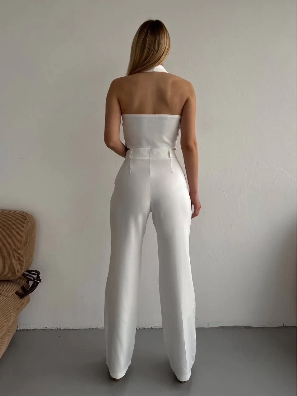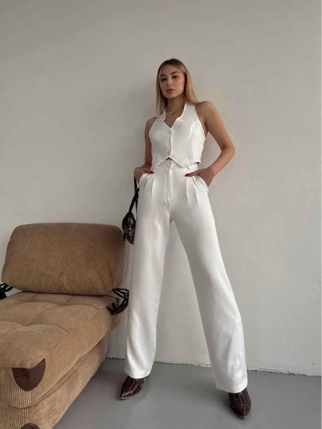Palazzo pantolon beyaz s23211, şıklık ve rahatlığı bir arada sunan bir parçadır.