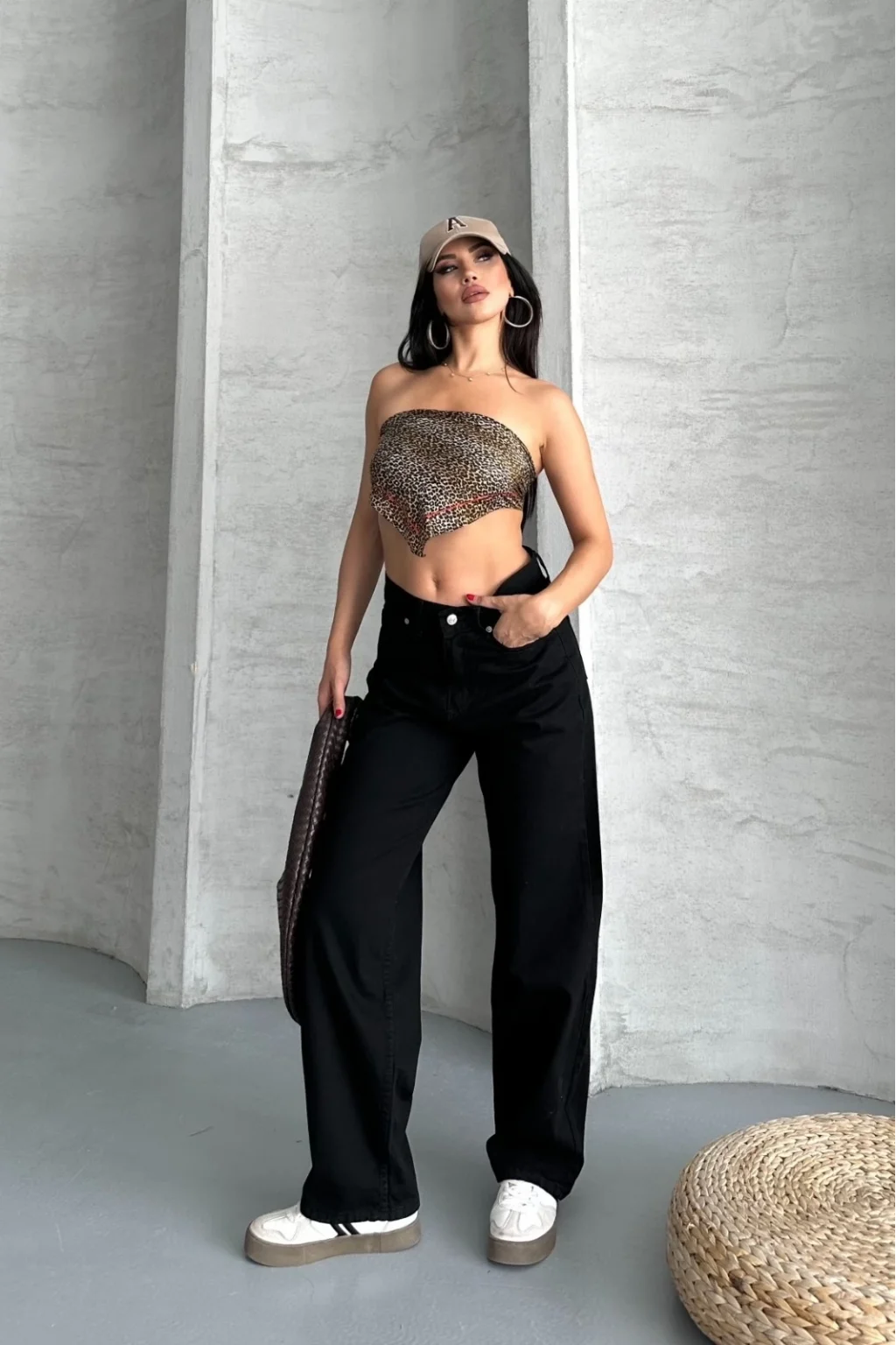 Palazzo straight enzim süper taş yıkama jeans pantolon siyah d2008, şıklığı ve rahatlığı bir arada sunar.
