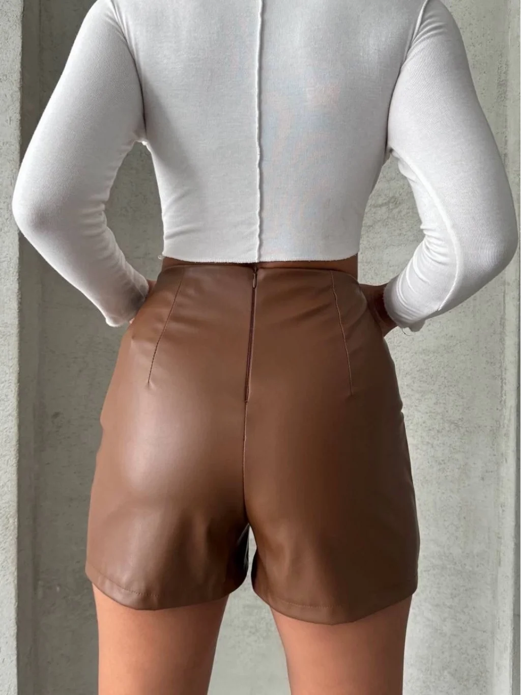 Bu parçalı cepli deri şort ile tarzınızı konuşturun, kendinizi özgür hissedin!