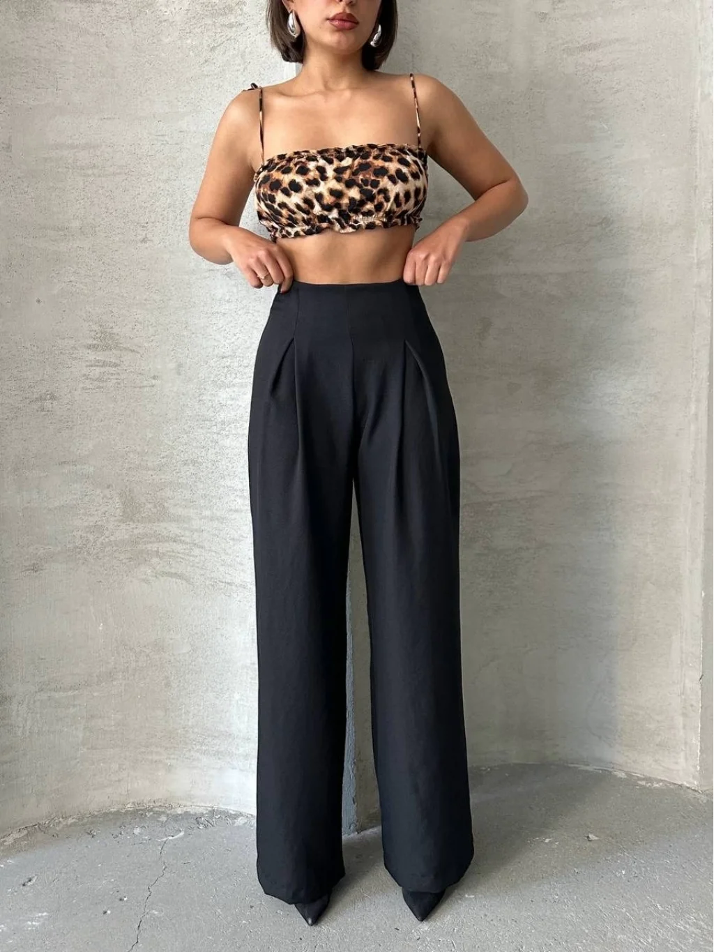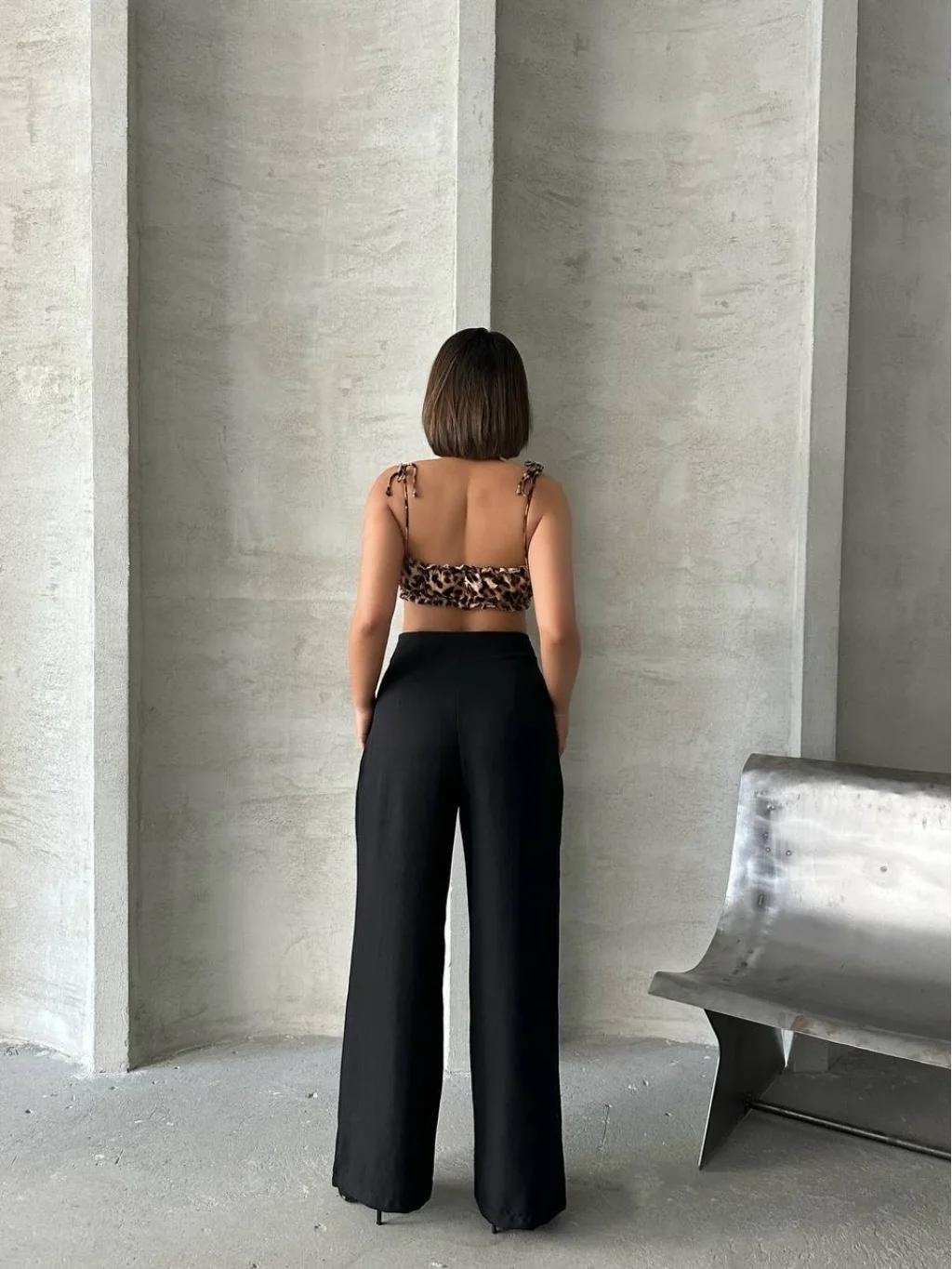 Pileli keten pantolon, yaz aylarında şıklık ve rahatlık arayan kadınların tercihi olacak