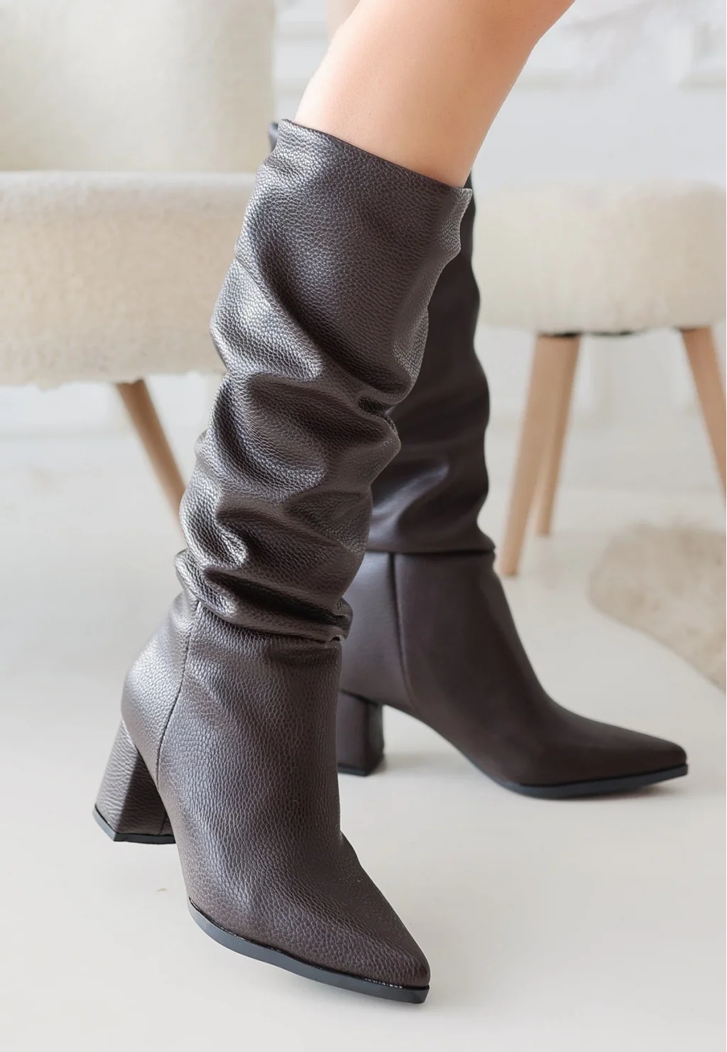 Detay: Topuklu Diz Altı Körüklü Çizme