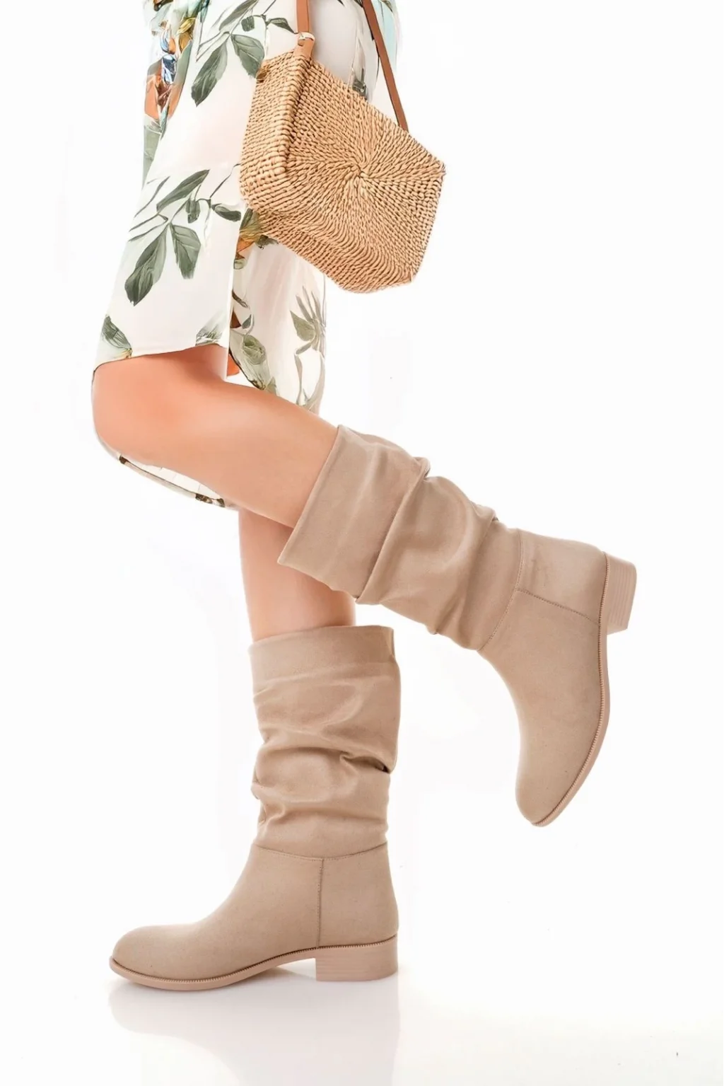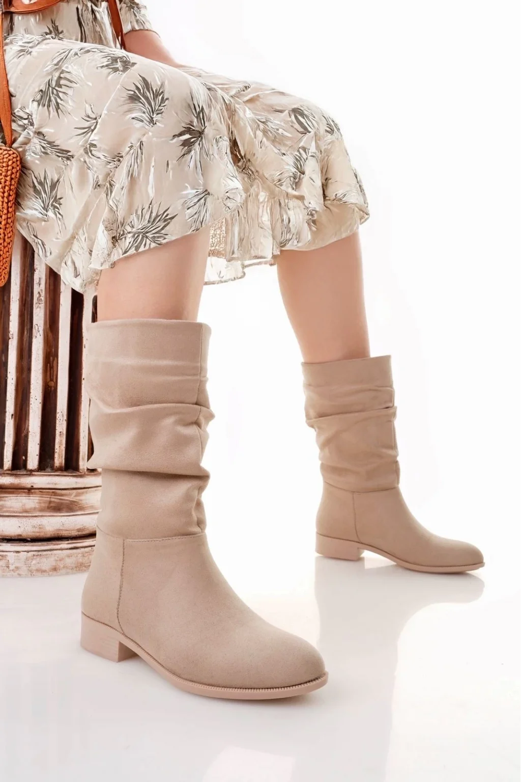 Detay: Topuklu Diz Altı Körüklü Çizme