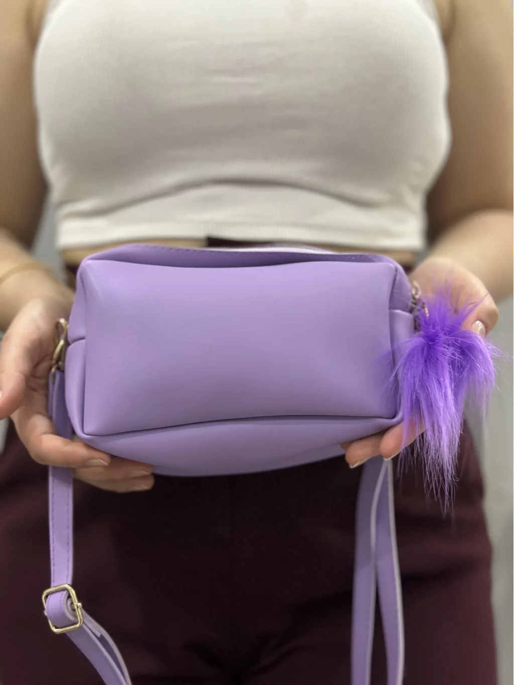 Modayı takip eden ve şıklıktan ödün vermeyenler için ideal bir seçenek olan Ponpon Mor Cilt Çanta, sizin tarzınızı yansıtacak.