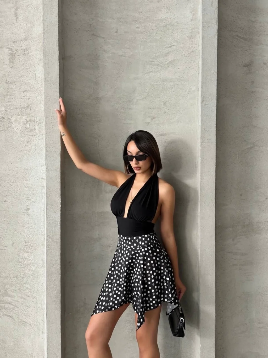 Şıklığı ve zarafeti bir arada sunan Puantiyeli Etek S25900, gardırobunuzun vazgeçilmez parçalarından olmaya aday!