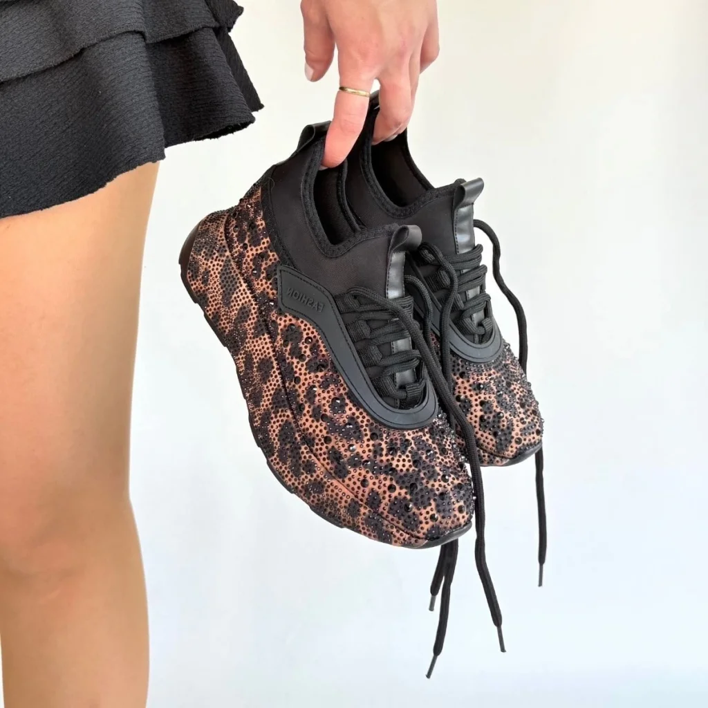Rimay Kahverengi Cilt Boncuk İşlemeli Spor Ayakkabı