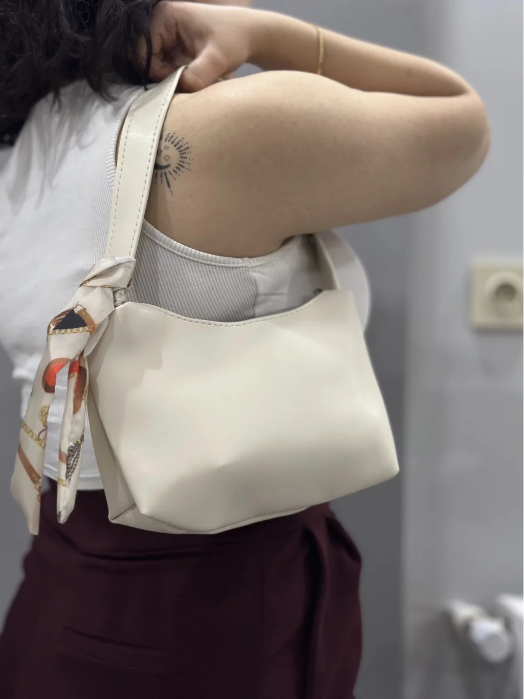 Özel krem rengi ile her tarza uyum sağlayan bu çanta, günlük kullanımınızda size şıklık katacak.