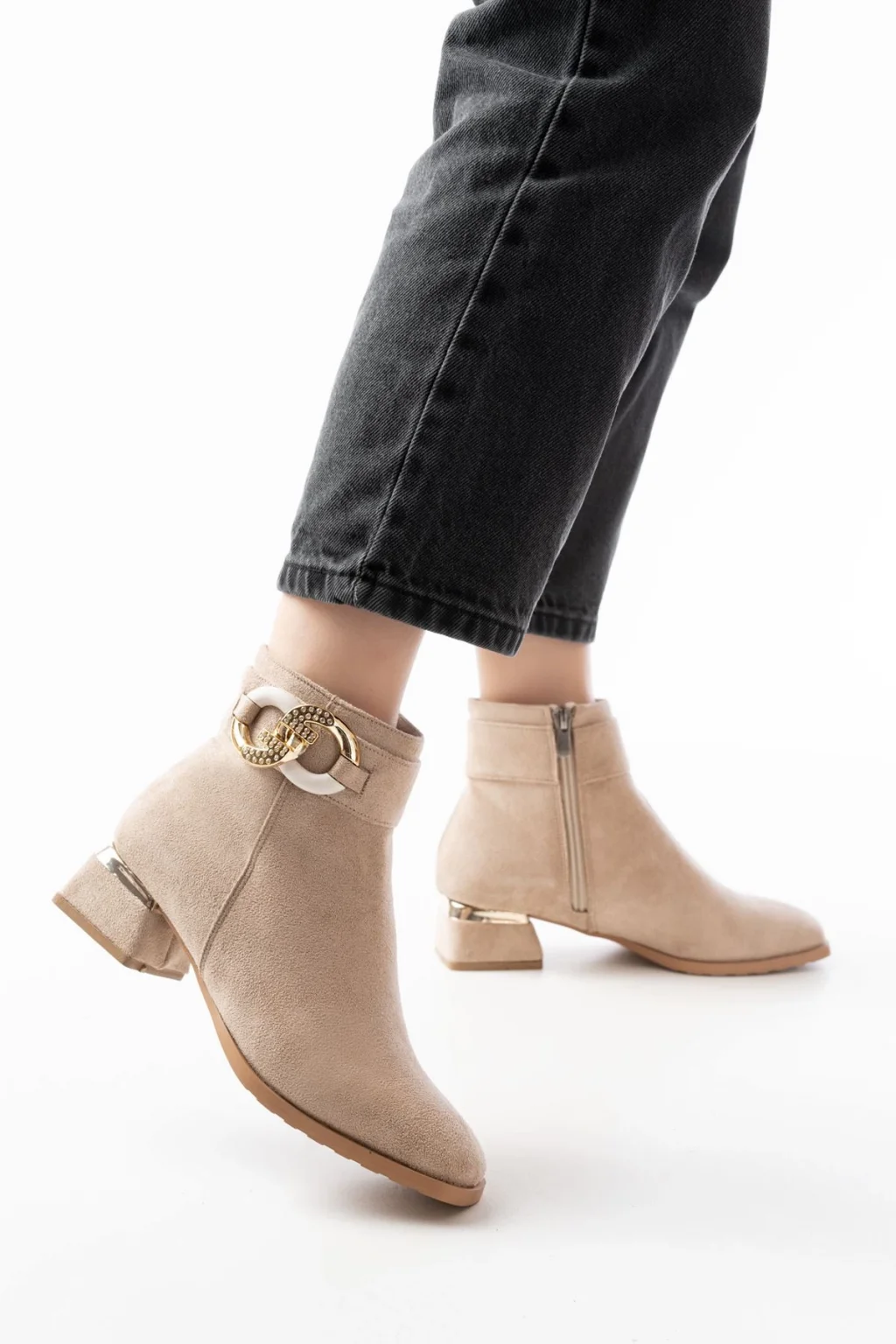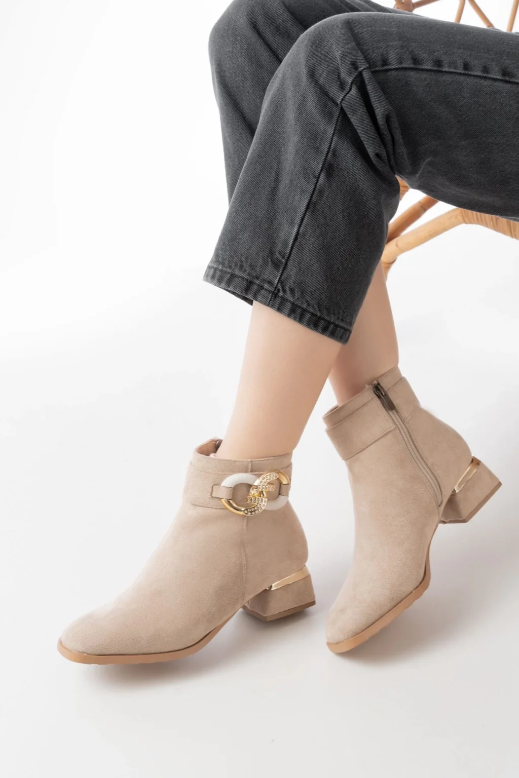 02-02 Siyah Süet Taş Aksesuarlı Lastikli Günlük Kadın Bot