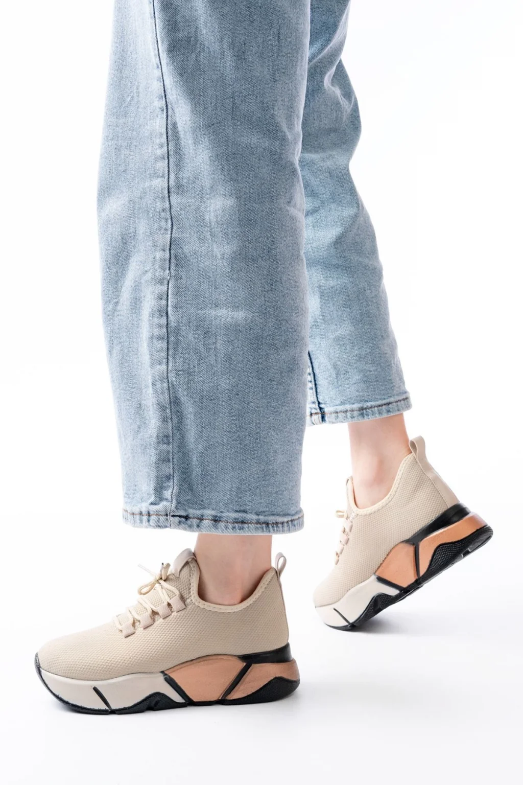Finna Bej Cilt Bağcıklı Spor Ayakkabı