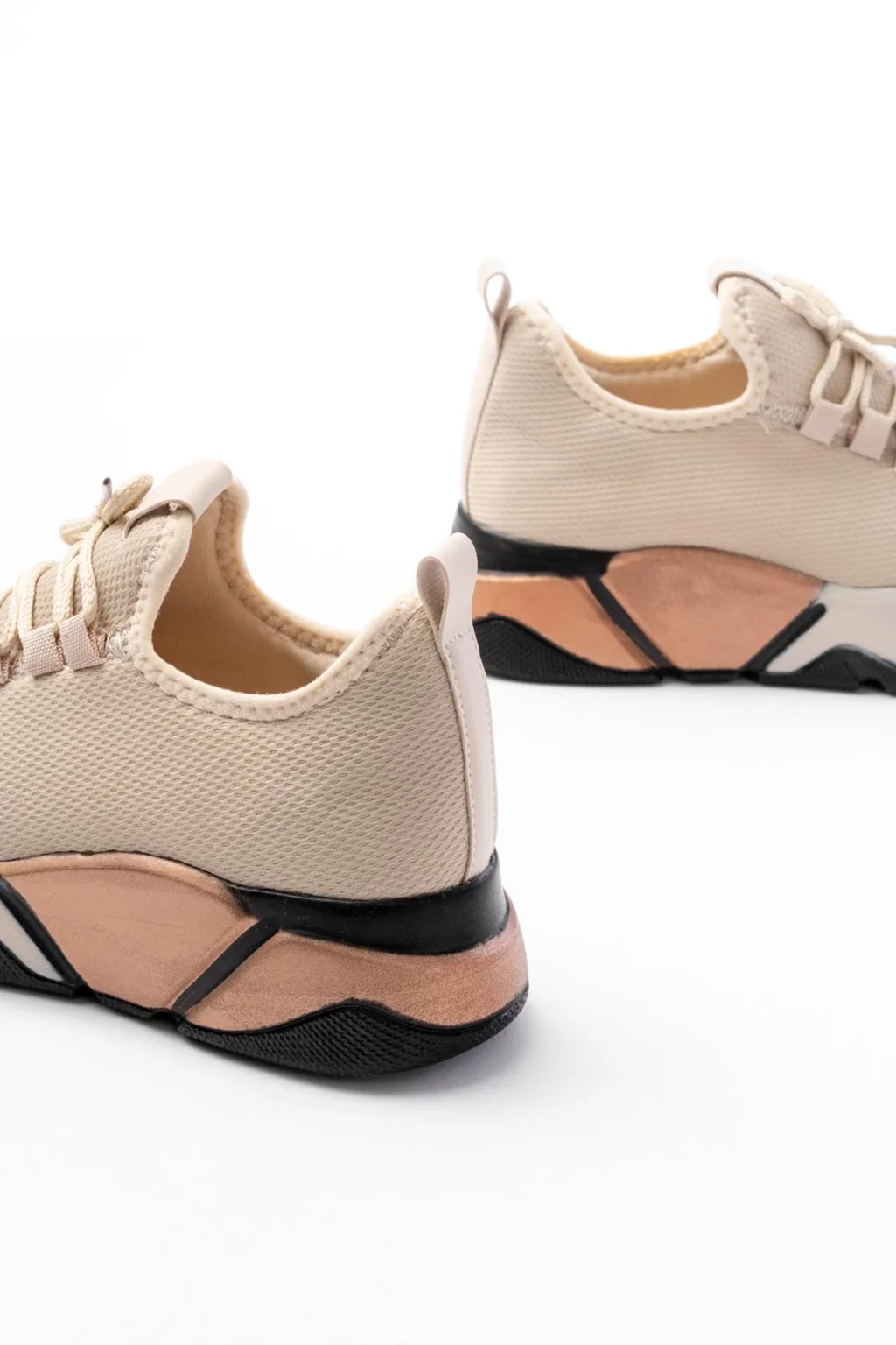 Emwa Bej Cilt Bağcıklı Spor Ayakkabı