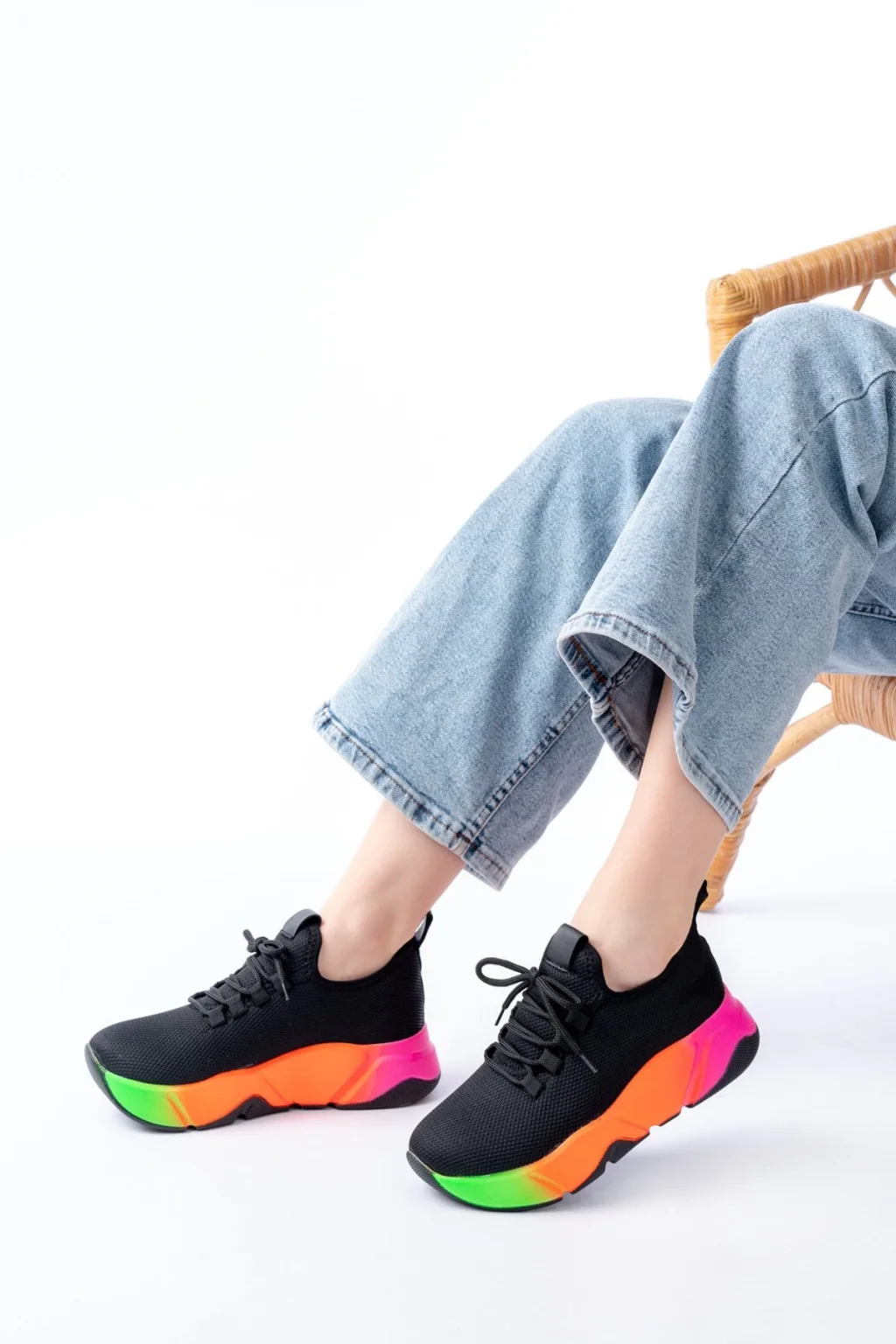 Hley Siyah Rugan Paraşüt Detaylı Bağcıklı Spor Ayakkabı