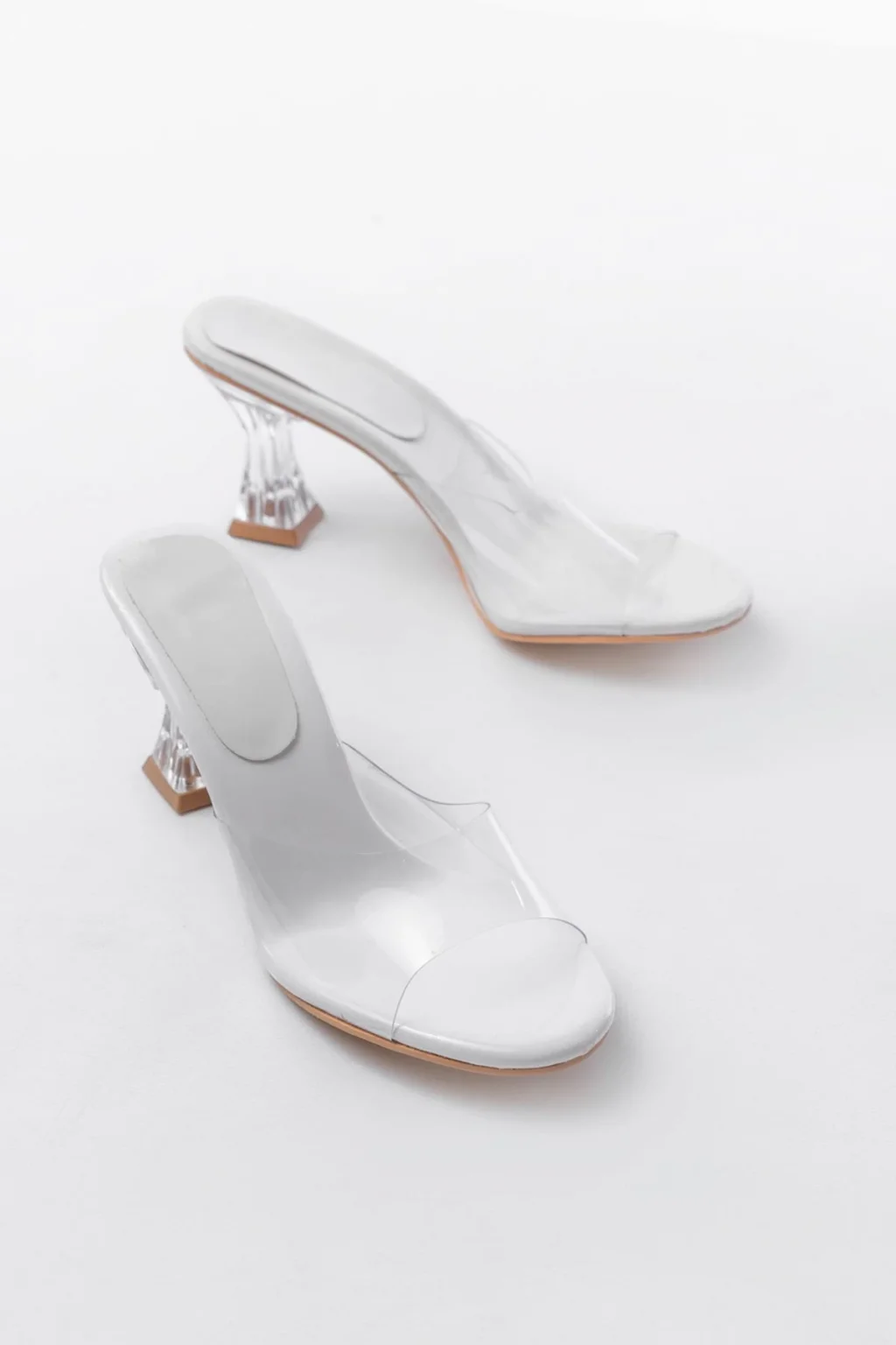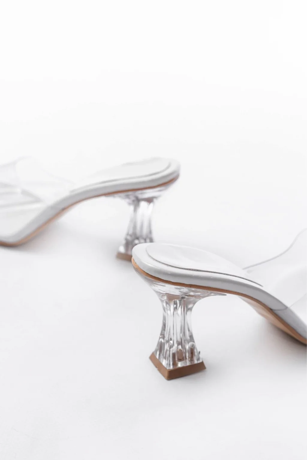 Toran Beyaz Rugan Siyah Süet Detaylı Topuklu Ayakkabı