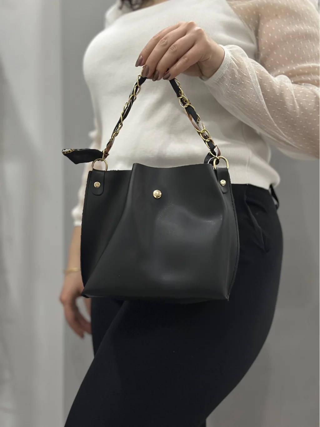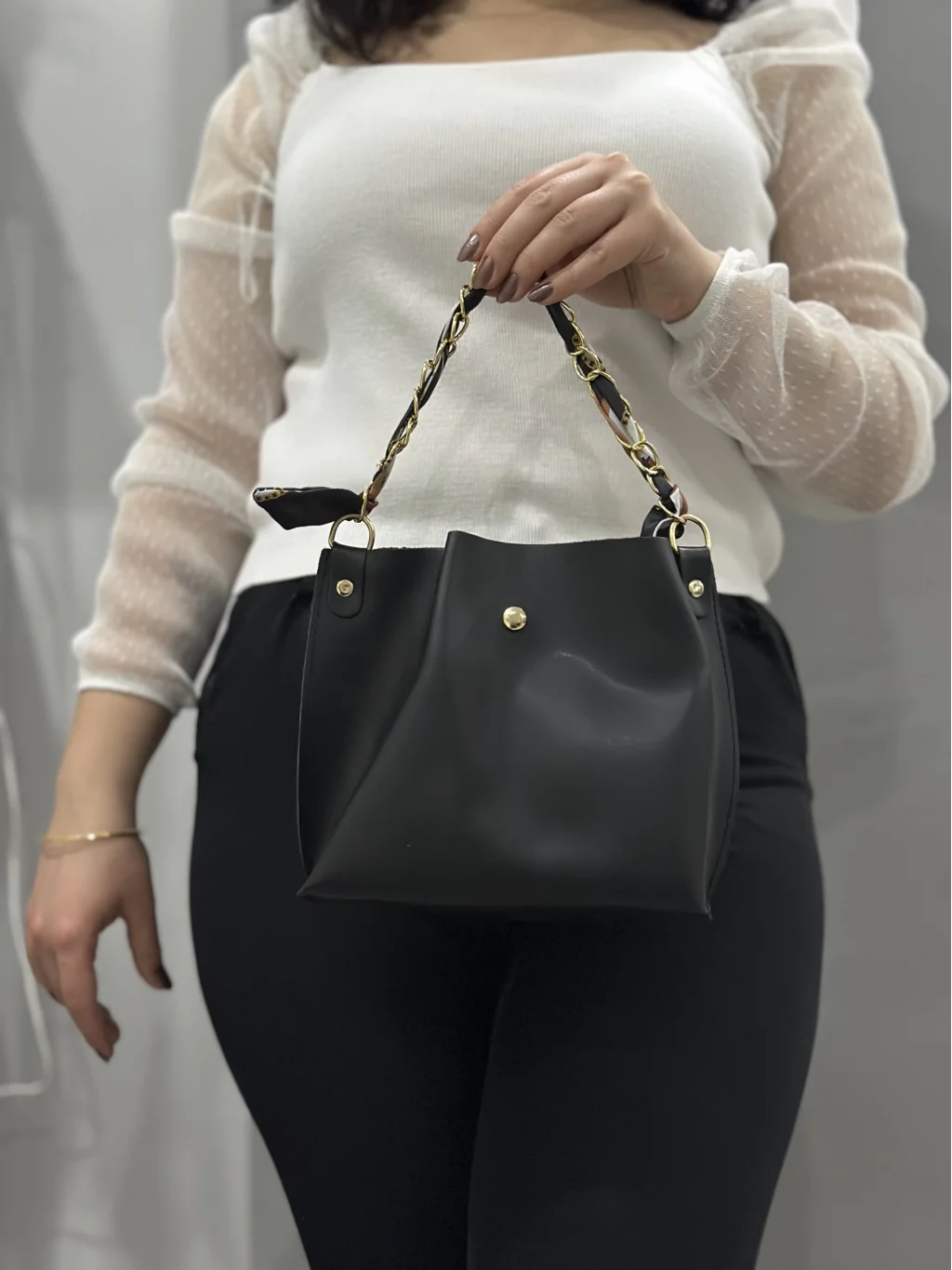 Bu şık siyah cilt çanta, günlük kullanımınızda stilinizi tamamlamanıza yardımcı olacak bir aksesuardır.