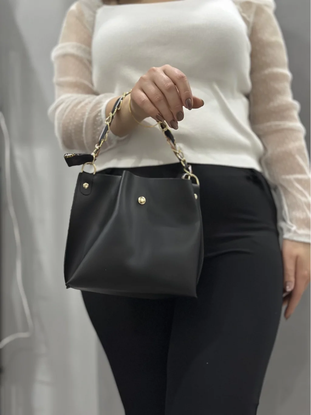 Bu siyah cilt çanta, günlük hayatta ihtiyacınız olan eşyaları taşırken tarzınızdan ödün vermek istemeyenler için ideal bir seçenektir.