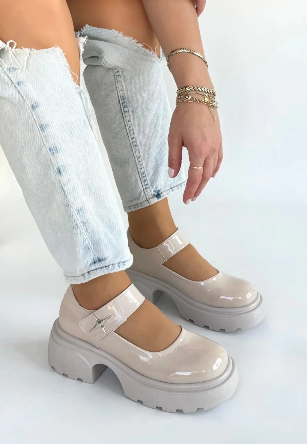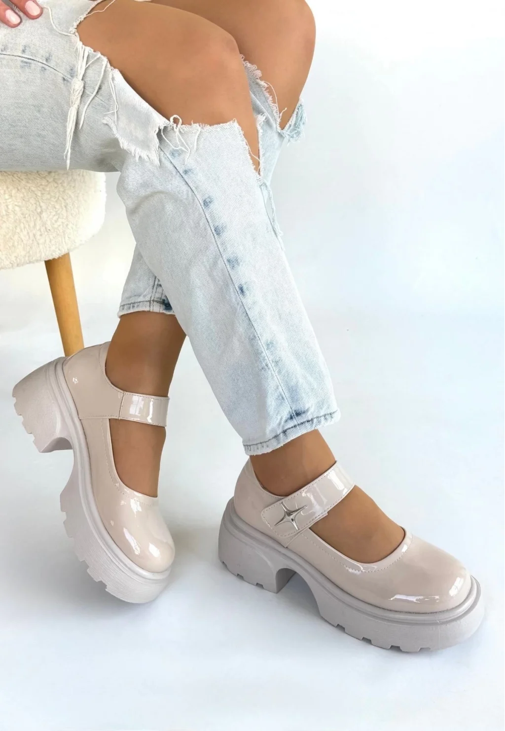 Siyat Bej Rugan Dolgu Topuk Oxford Ayakkabı