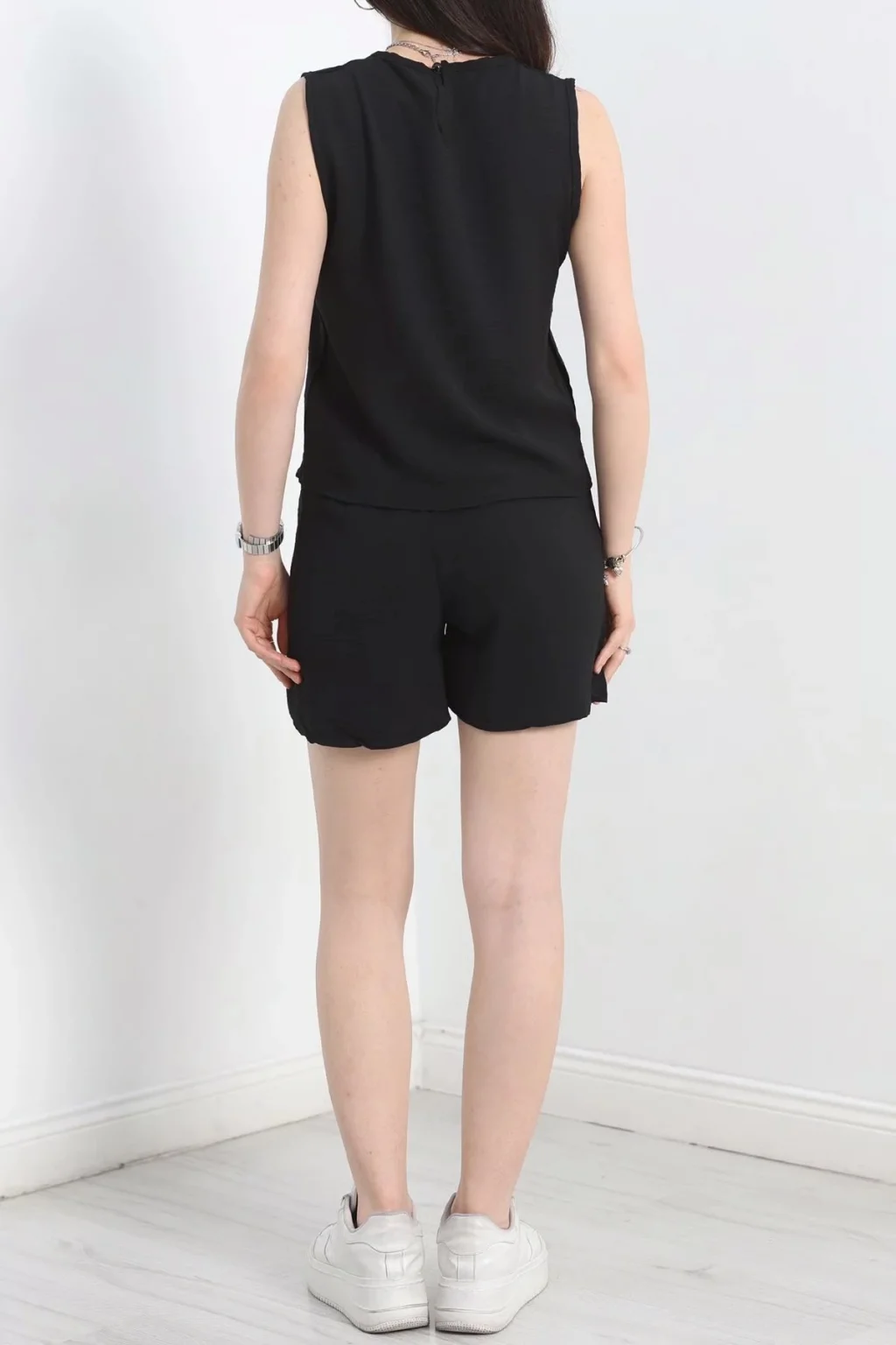 Ayrobin Şortlu Takım, şıklığı ve rahatlığı bir arada sunar. Siyah rengi ile her mekâna uyum sağlayan bu takım, kadınların favorisi olmaya aday.