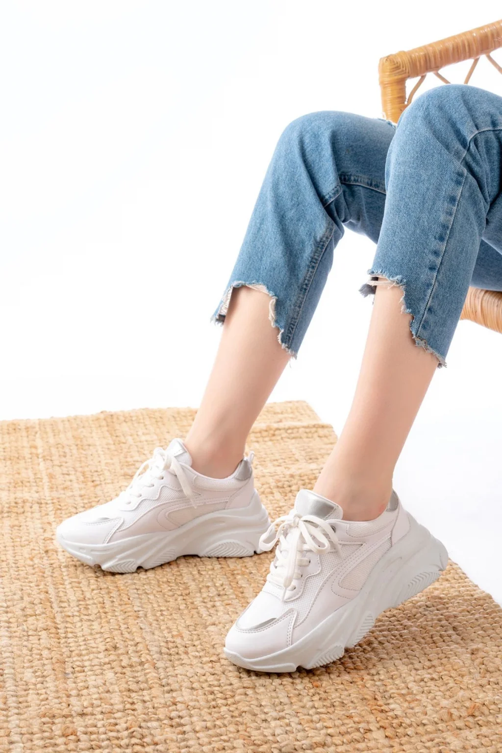 Lawin Beyaz Cilt Beyaz Simli Bağcıklı Spor Ayakkabı