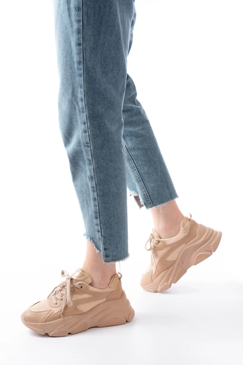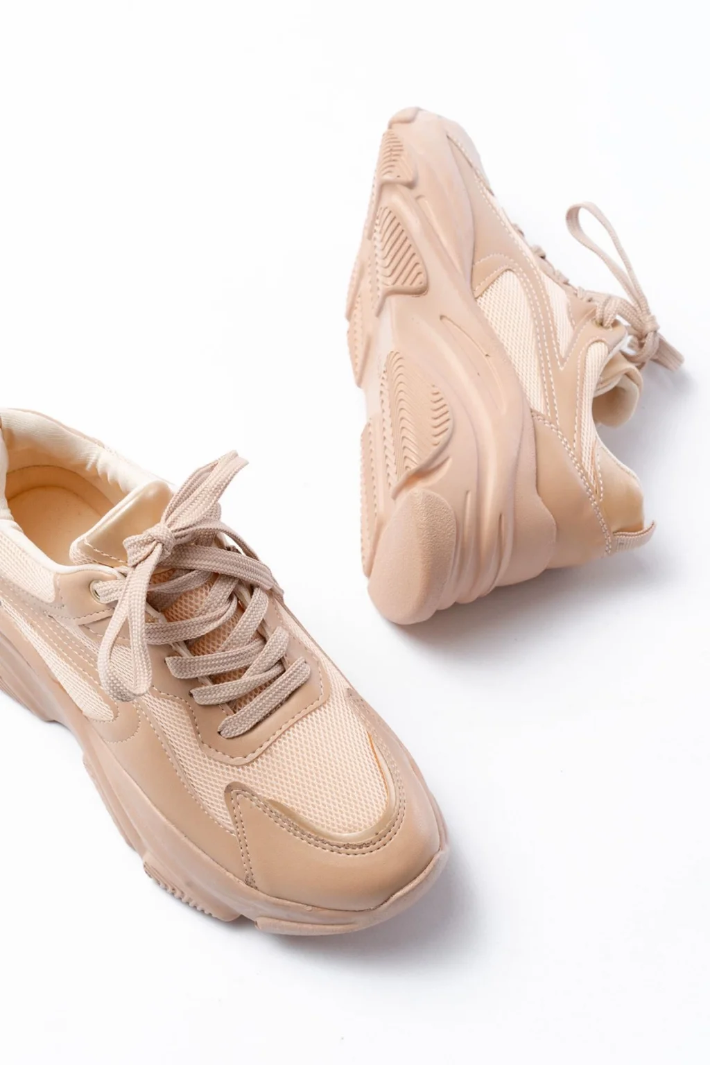 Finna Bej Cilt Bağcıklı Spor Ayakkabı