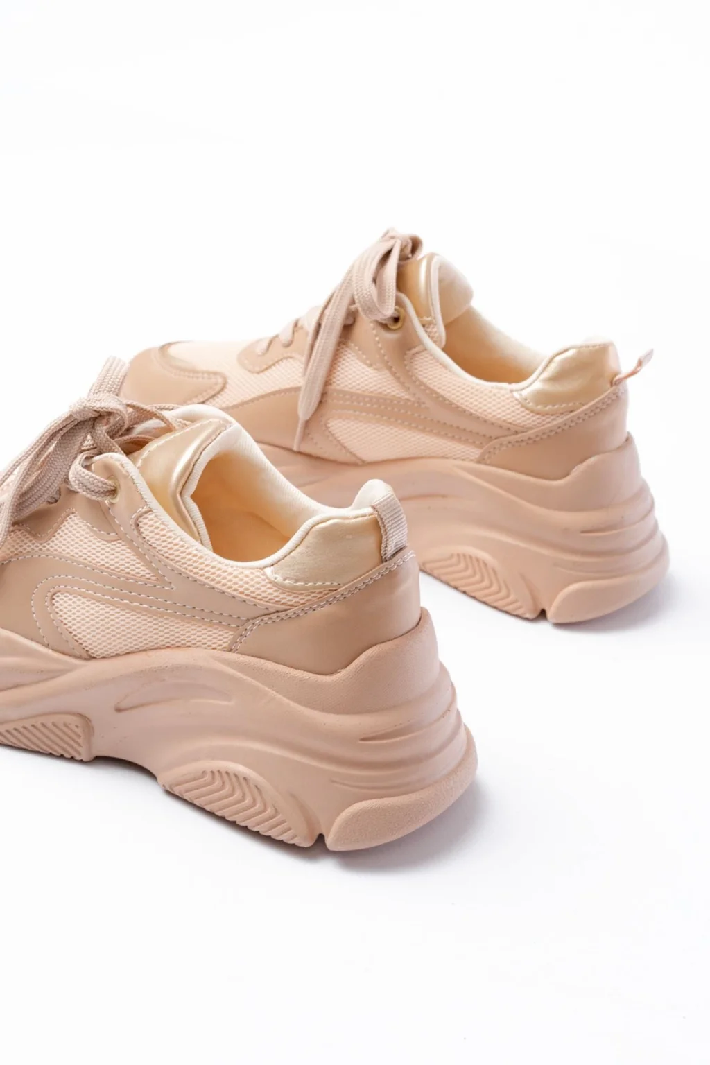 Emwa Bej Cilt Bağcıklı Spor Ayakkabı