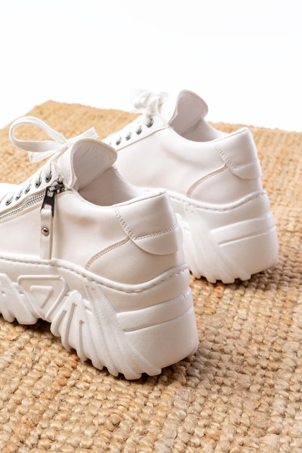 Natte Beyaz Cilt Bağcıklı Spor Ayakkabı