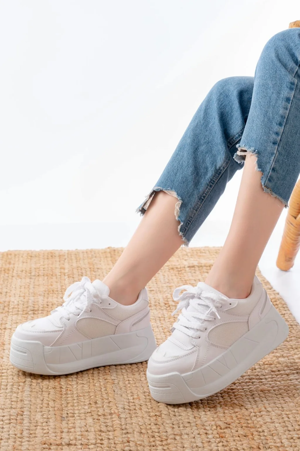 Finna Beyaz Cilt Bağcıklı Spor Ayakkabı