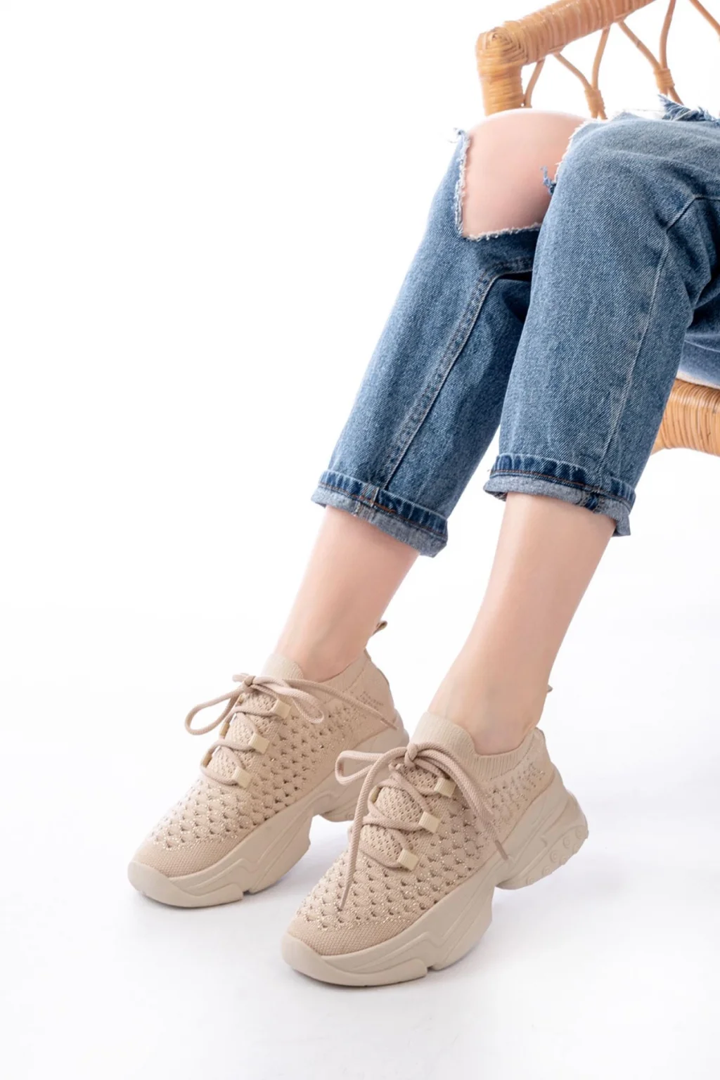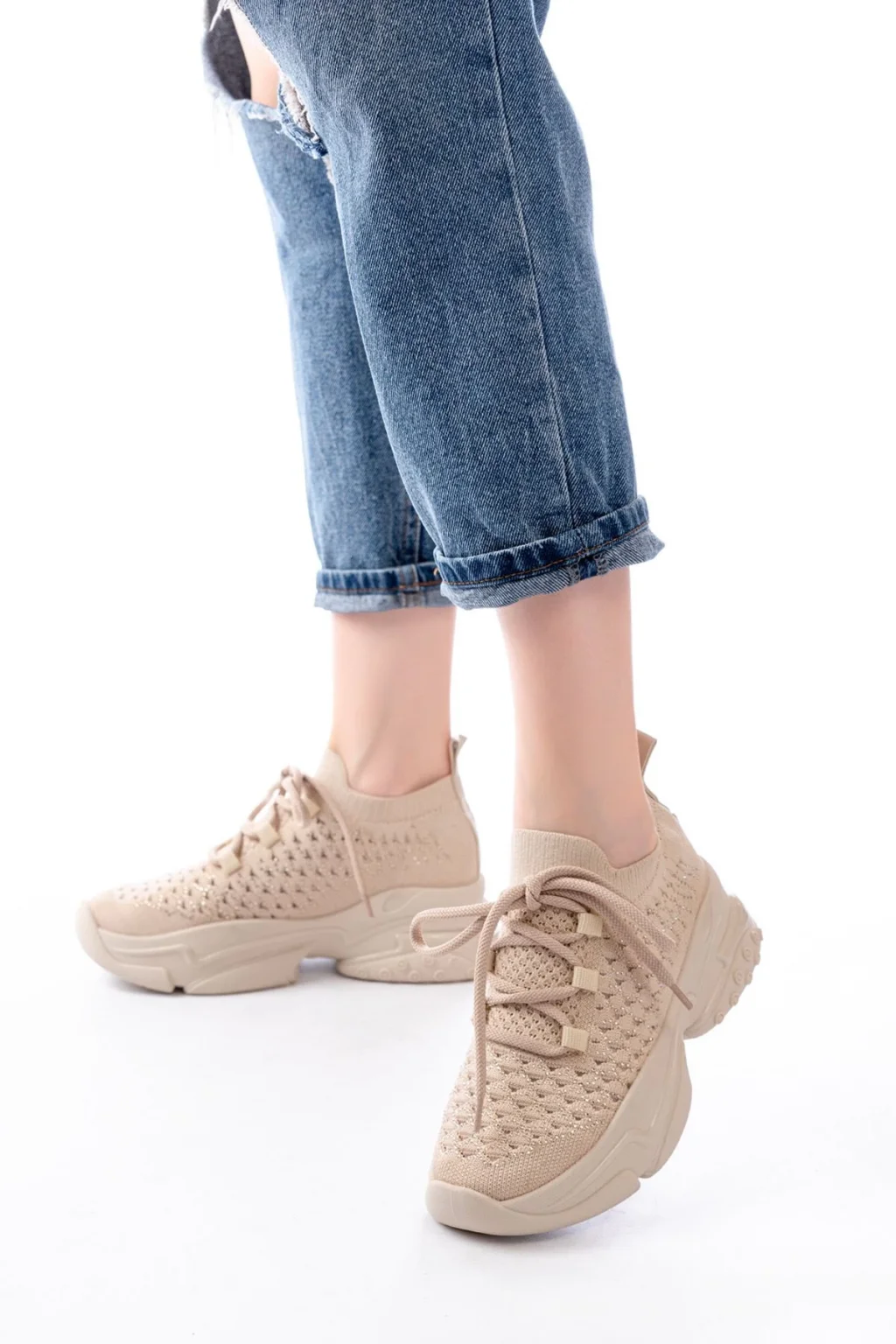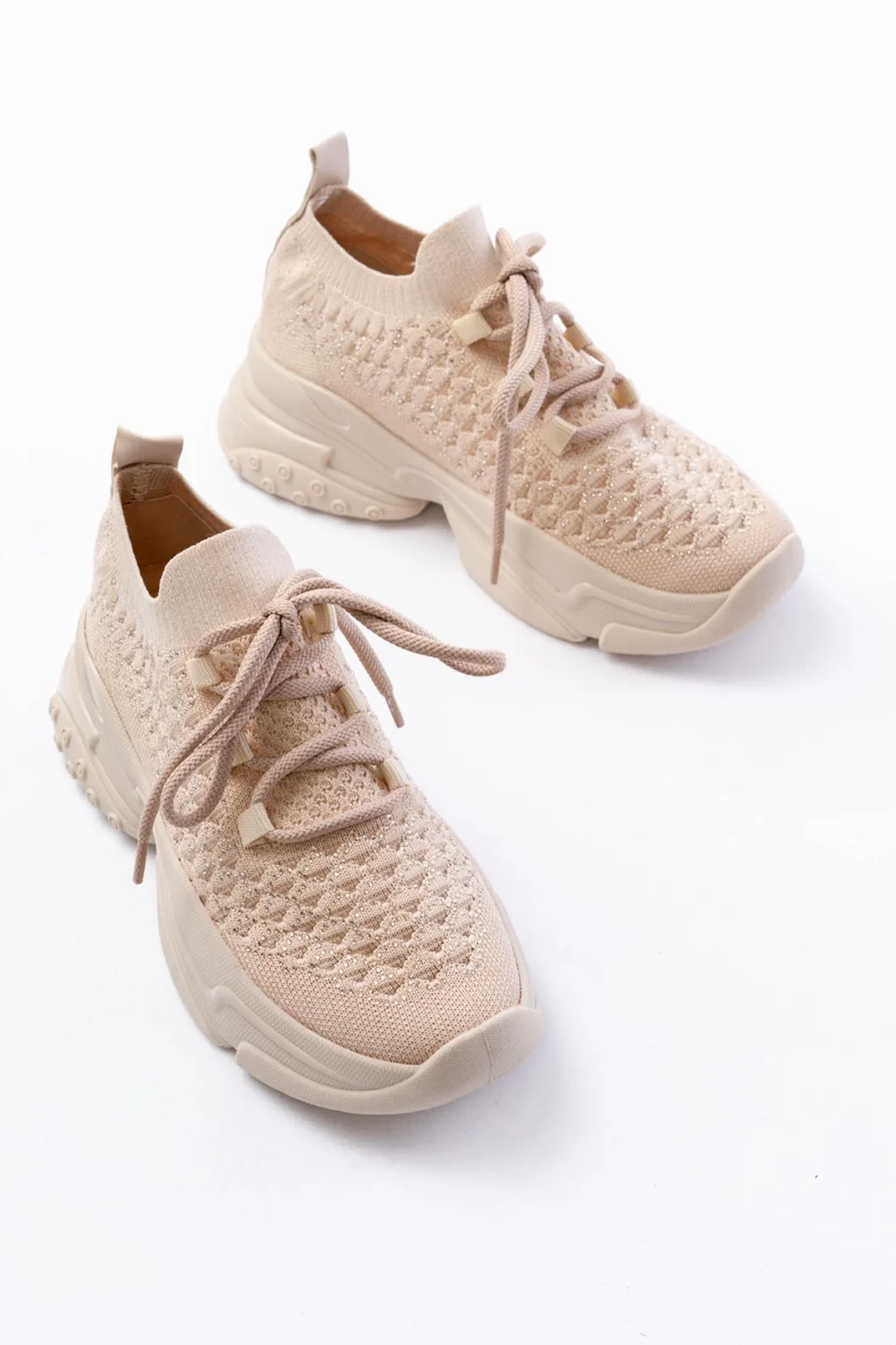 Emwa Bej Cilt Bağcıklı Spor Ayakkabı
