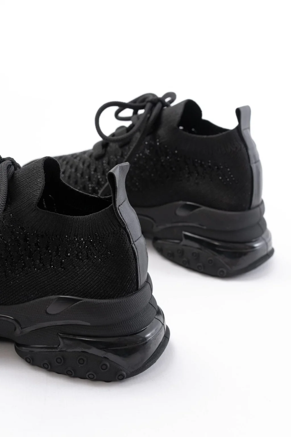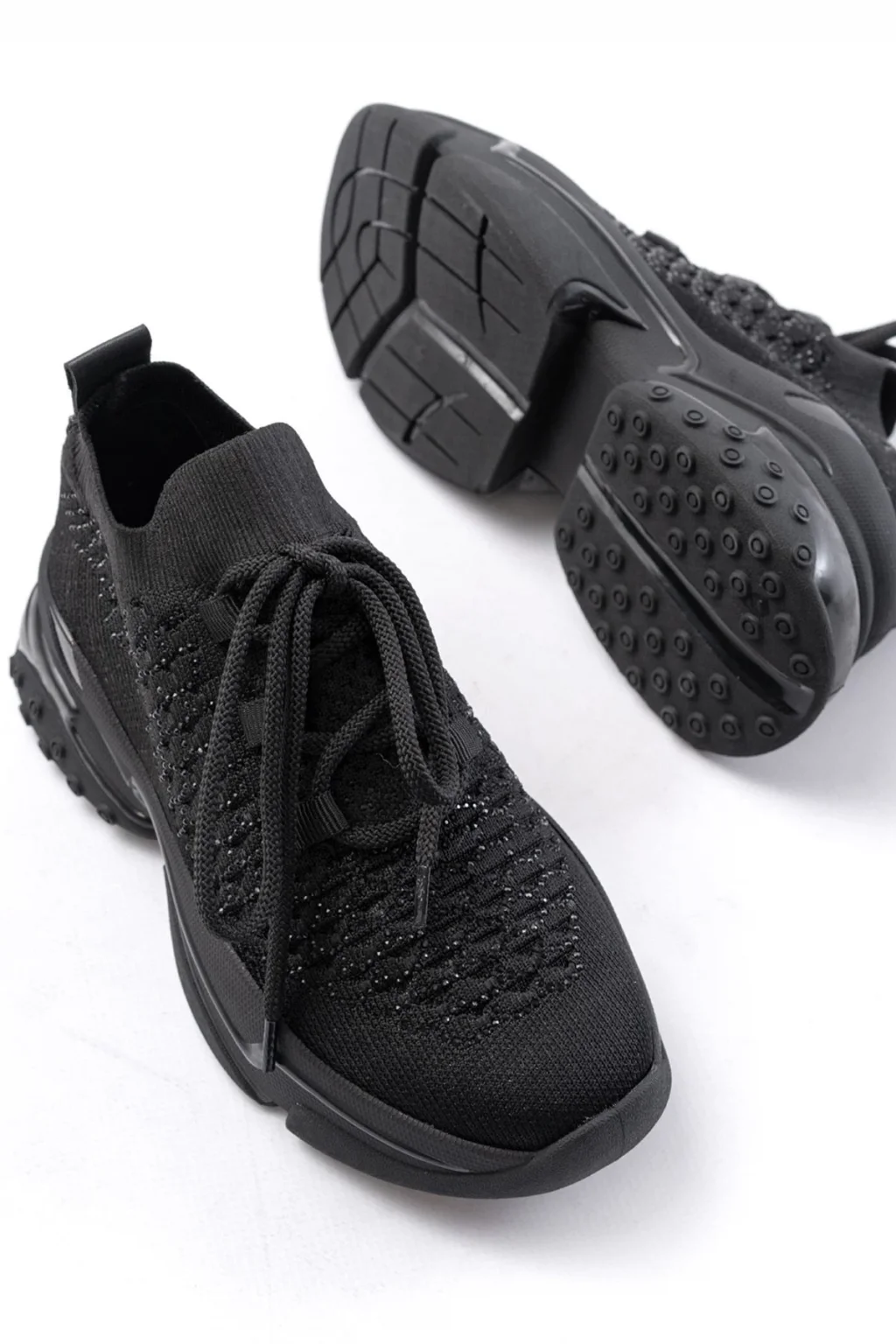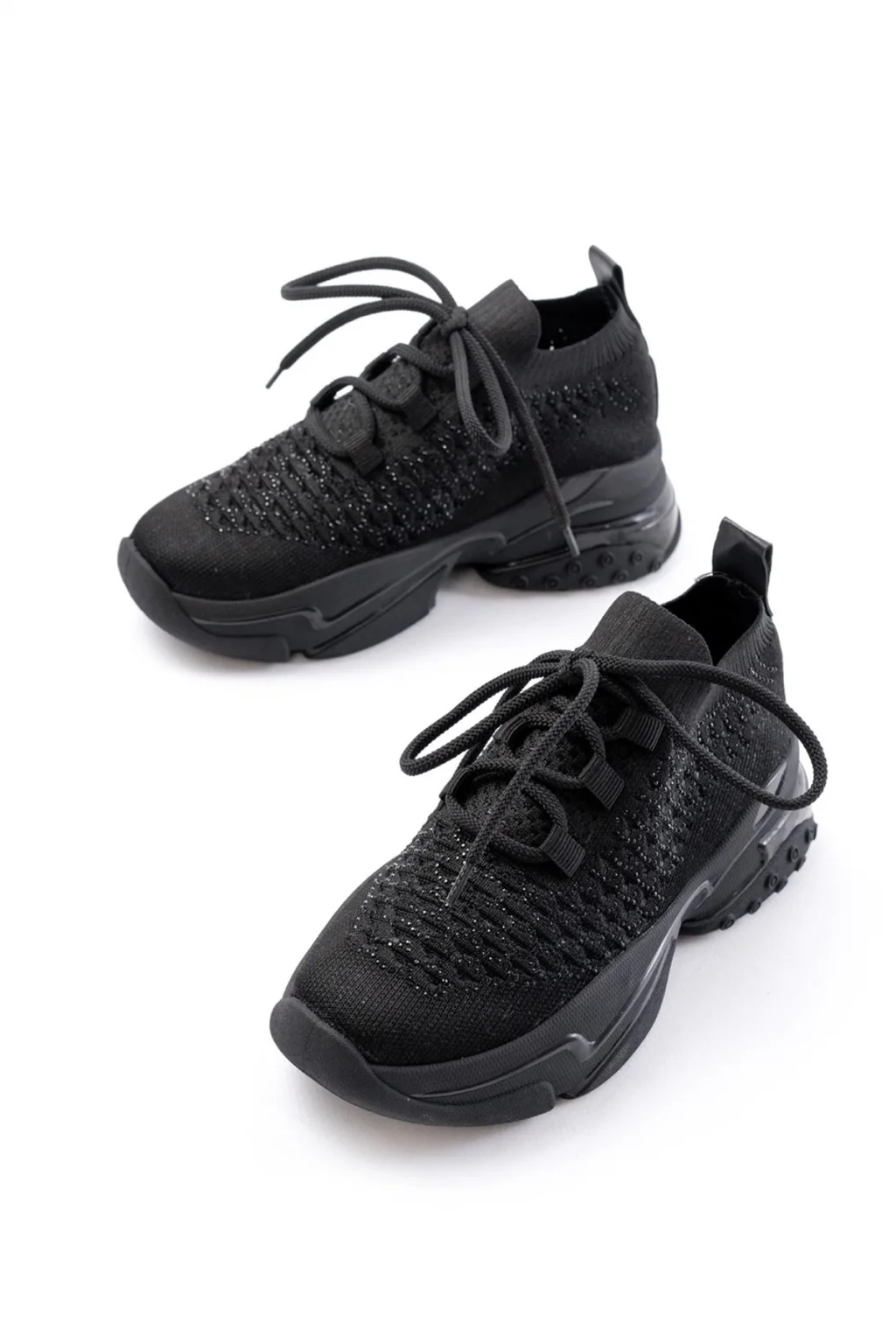 Natte Siyah Cilt Bağcıklı Spor Ayakkabı