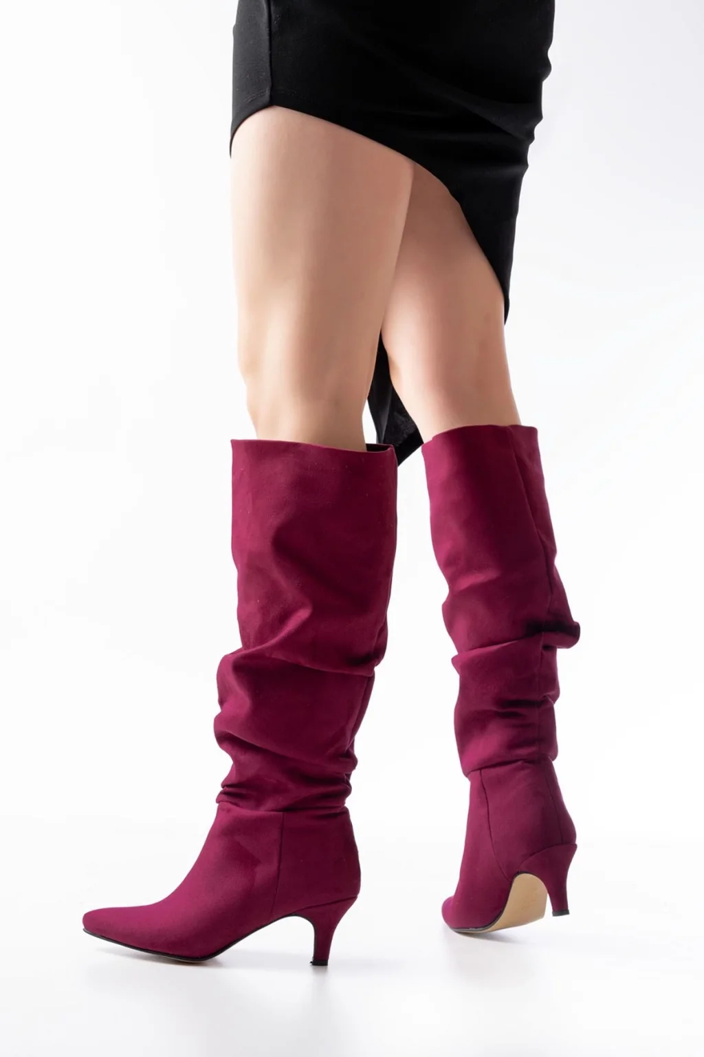 SR-2001 Siyah Süet Körüklü İnce Topuklu Günlük Bayan Çizme