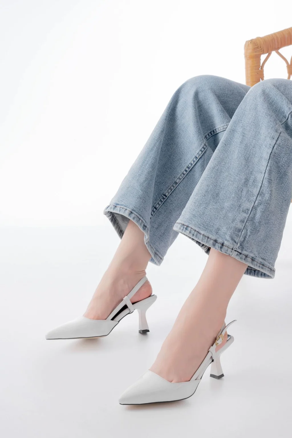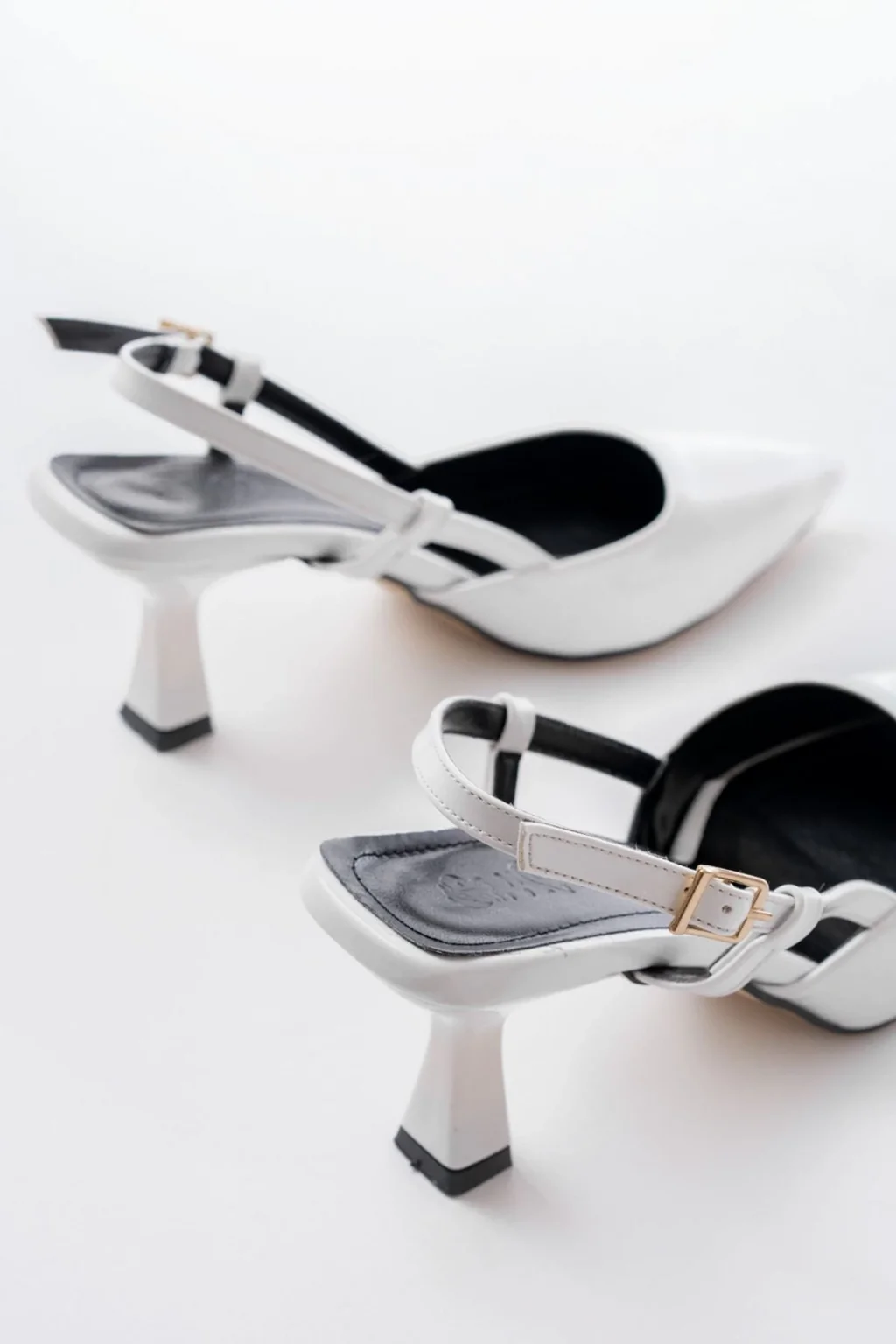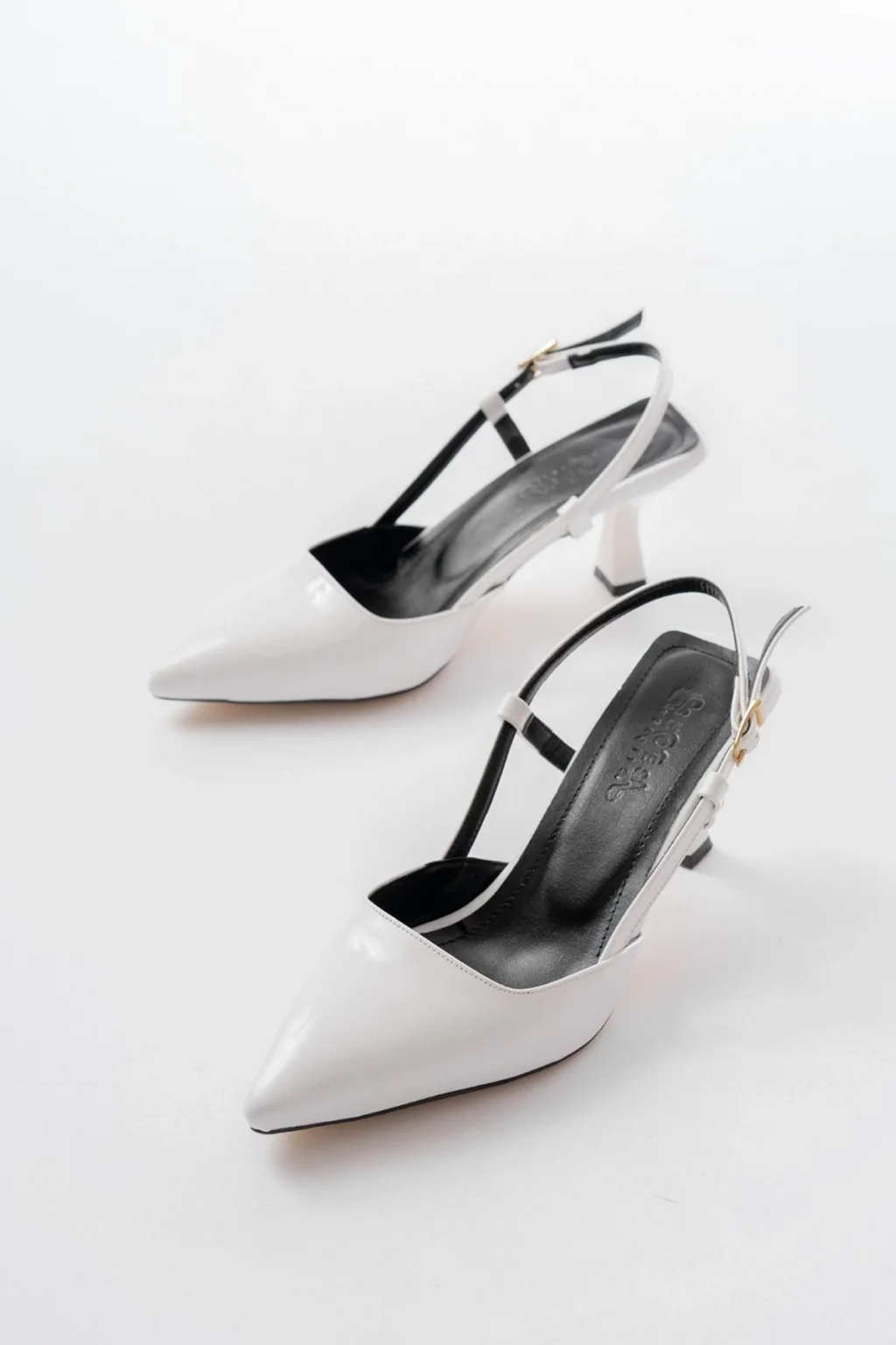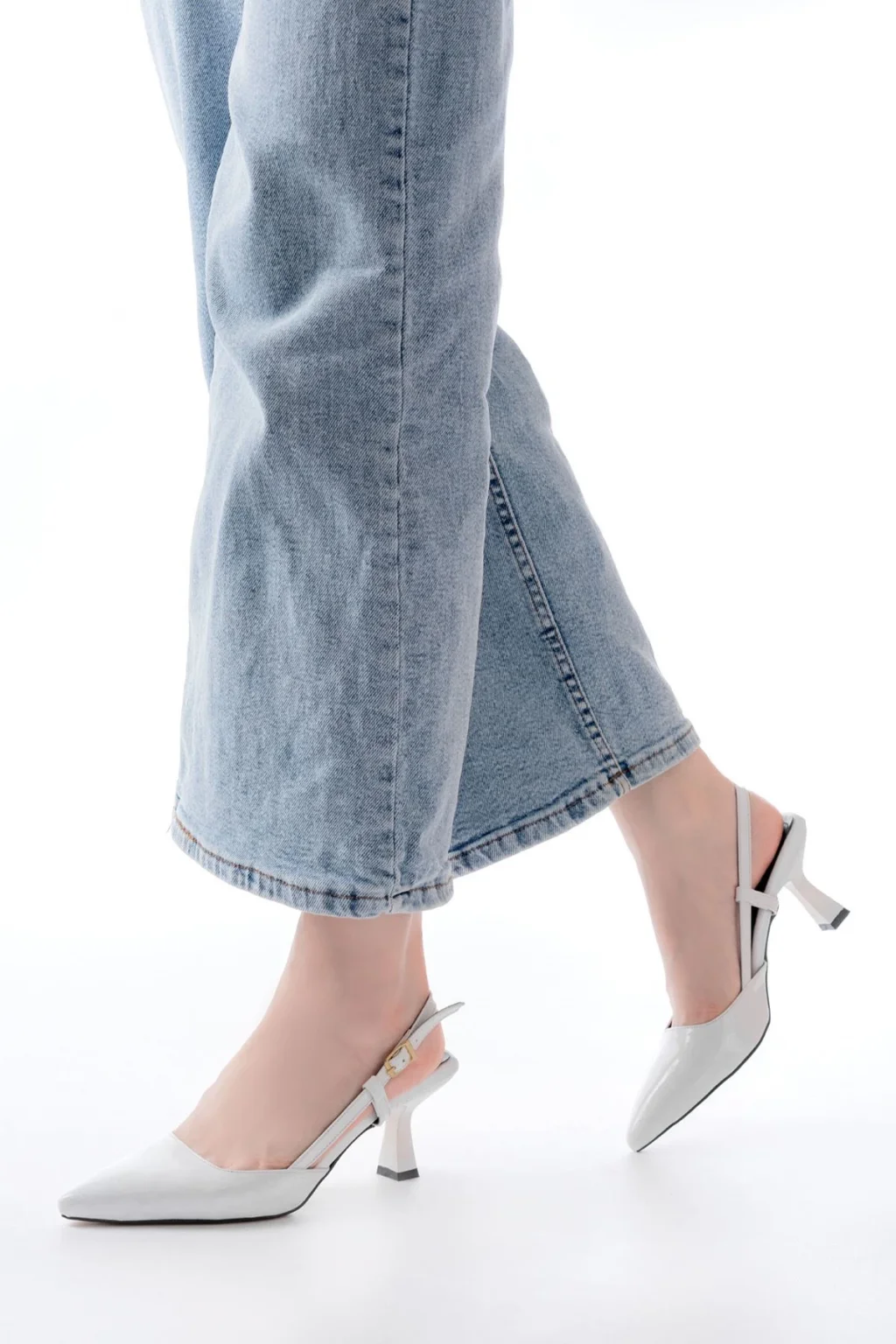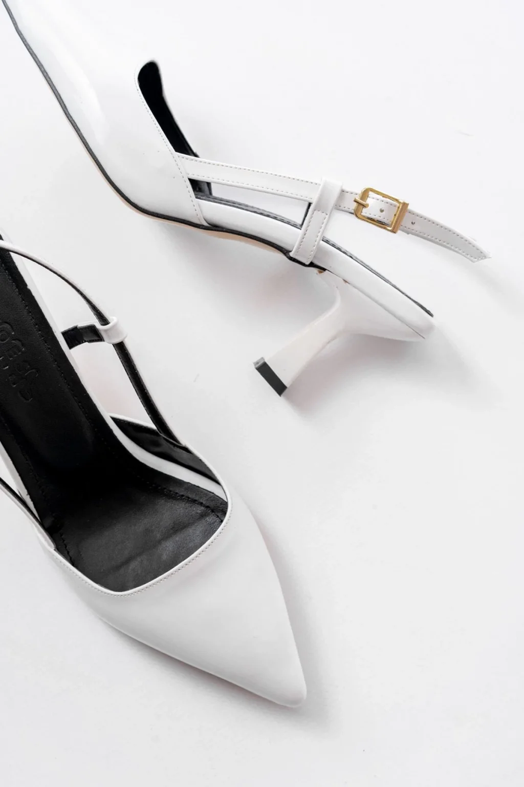 Toran Beyaz Rugan Siyah Süet Detaylı Topuklu Ayakkabı