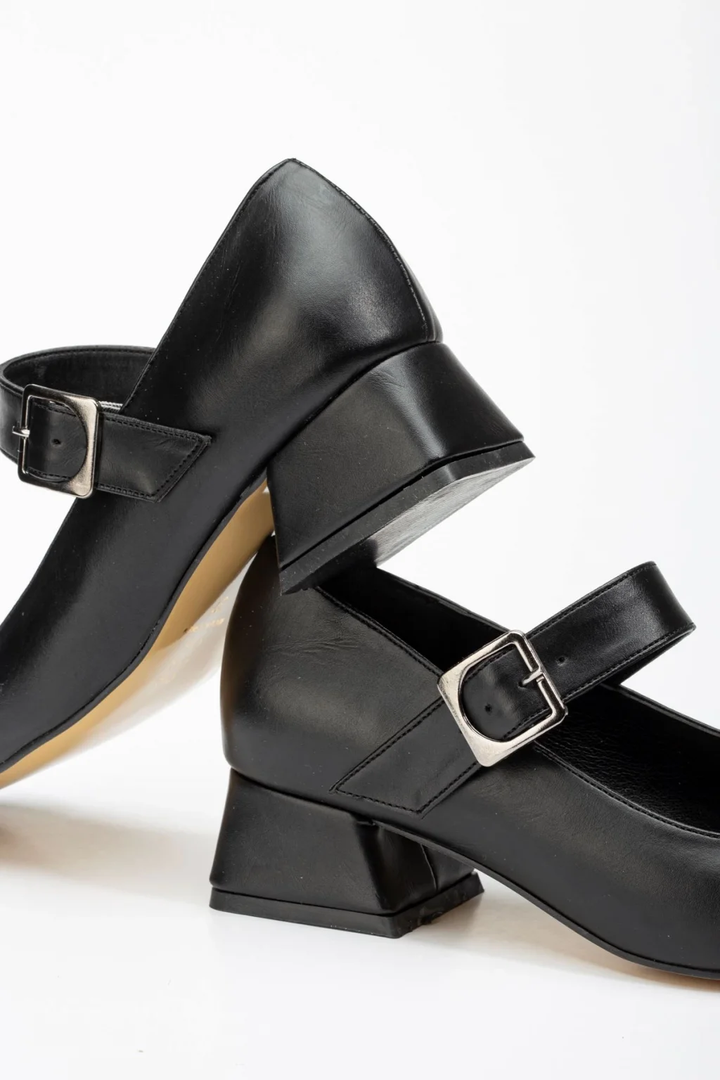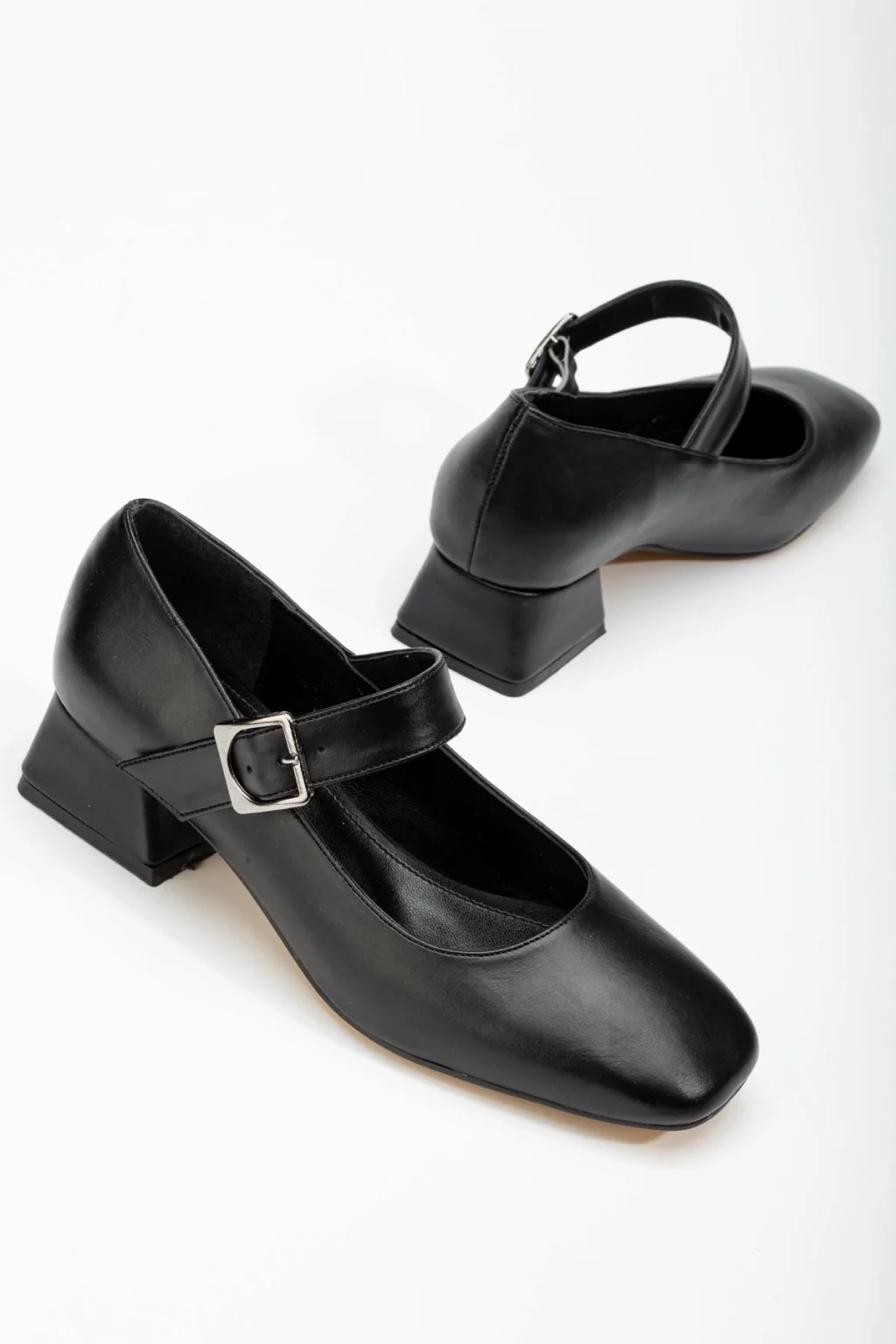 Lanina Siyah Cilt Topuklu Ayakkabı