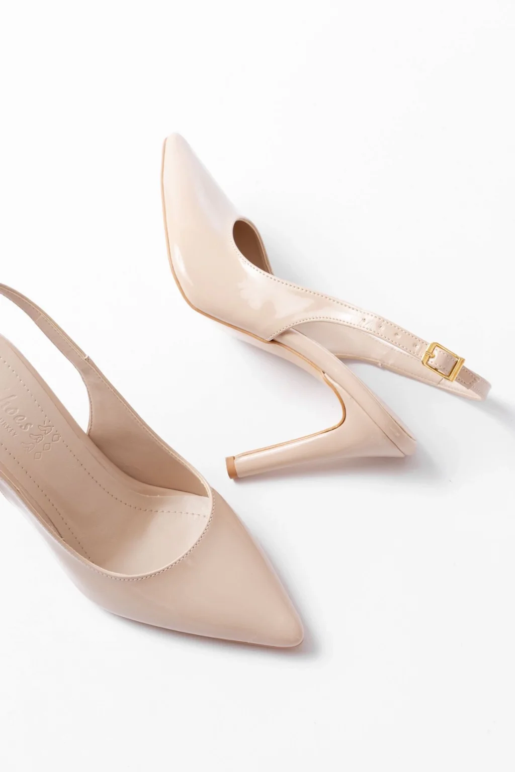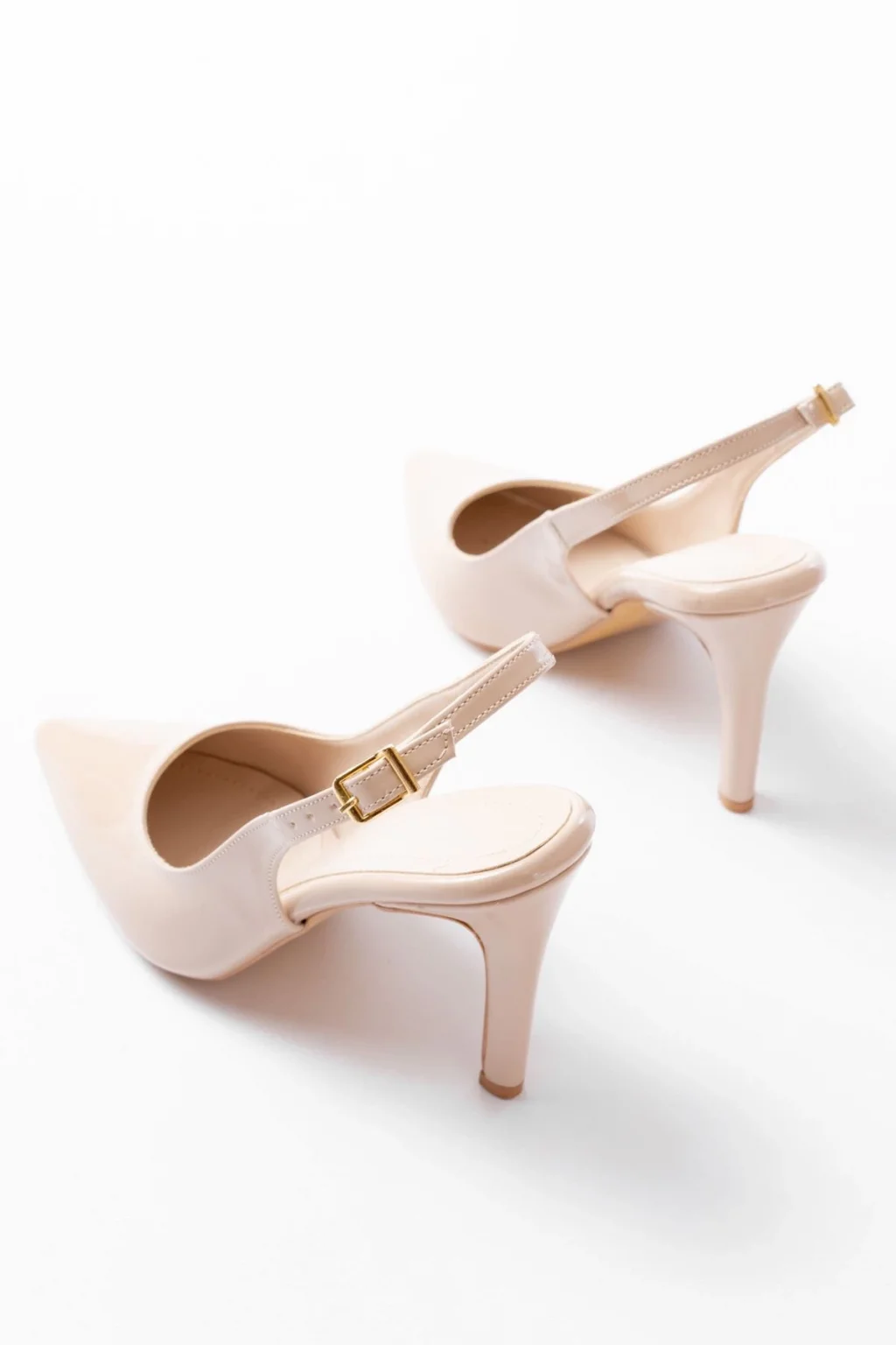 Toran Beyaz Rugan Siyah Süet Detaylı Topuklu Ayakkabı