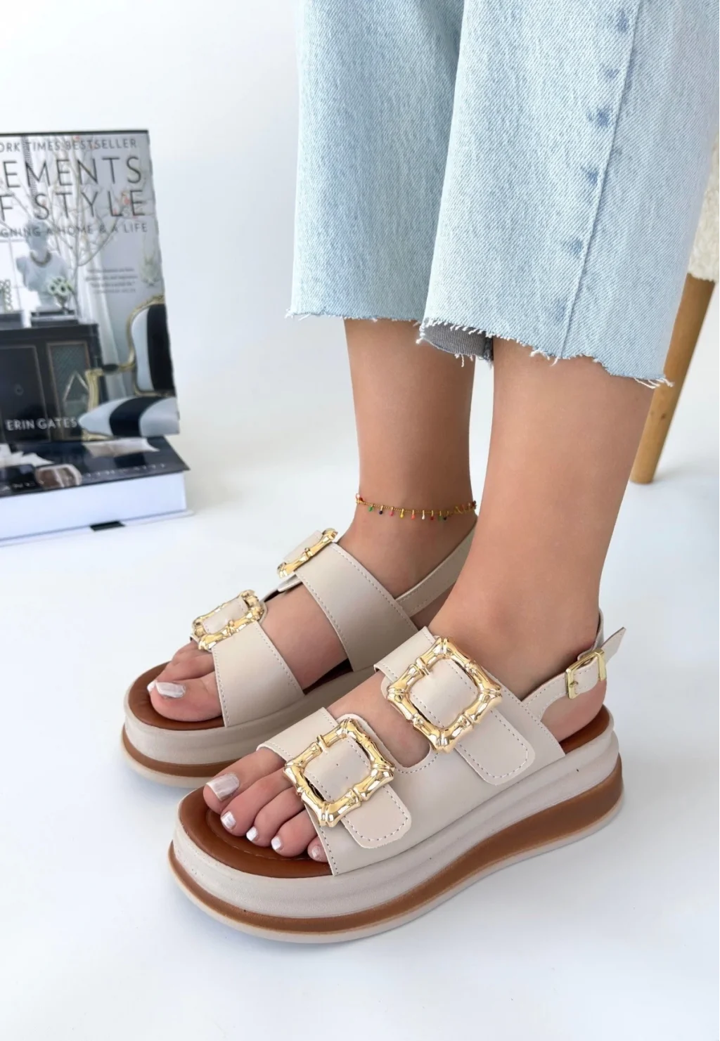 Detay : Tokalı Kemerli Ortapedik Sandalet