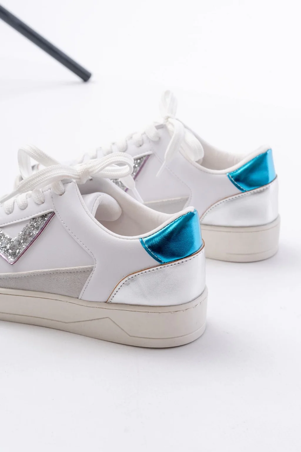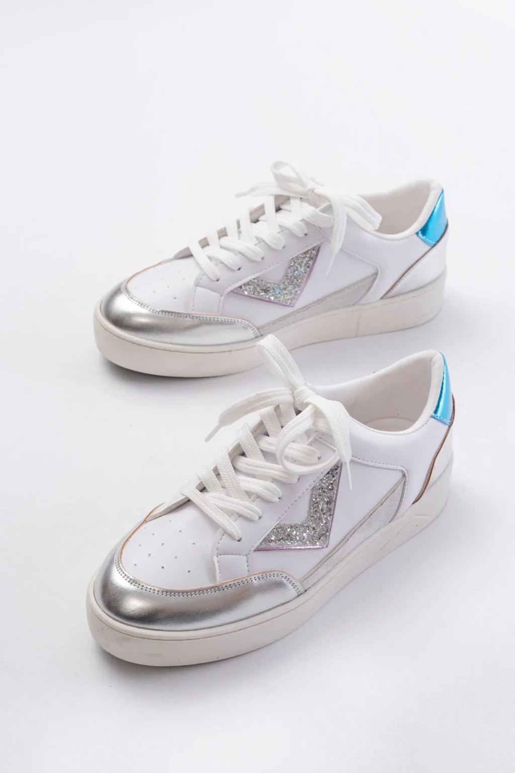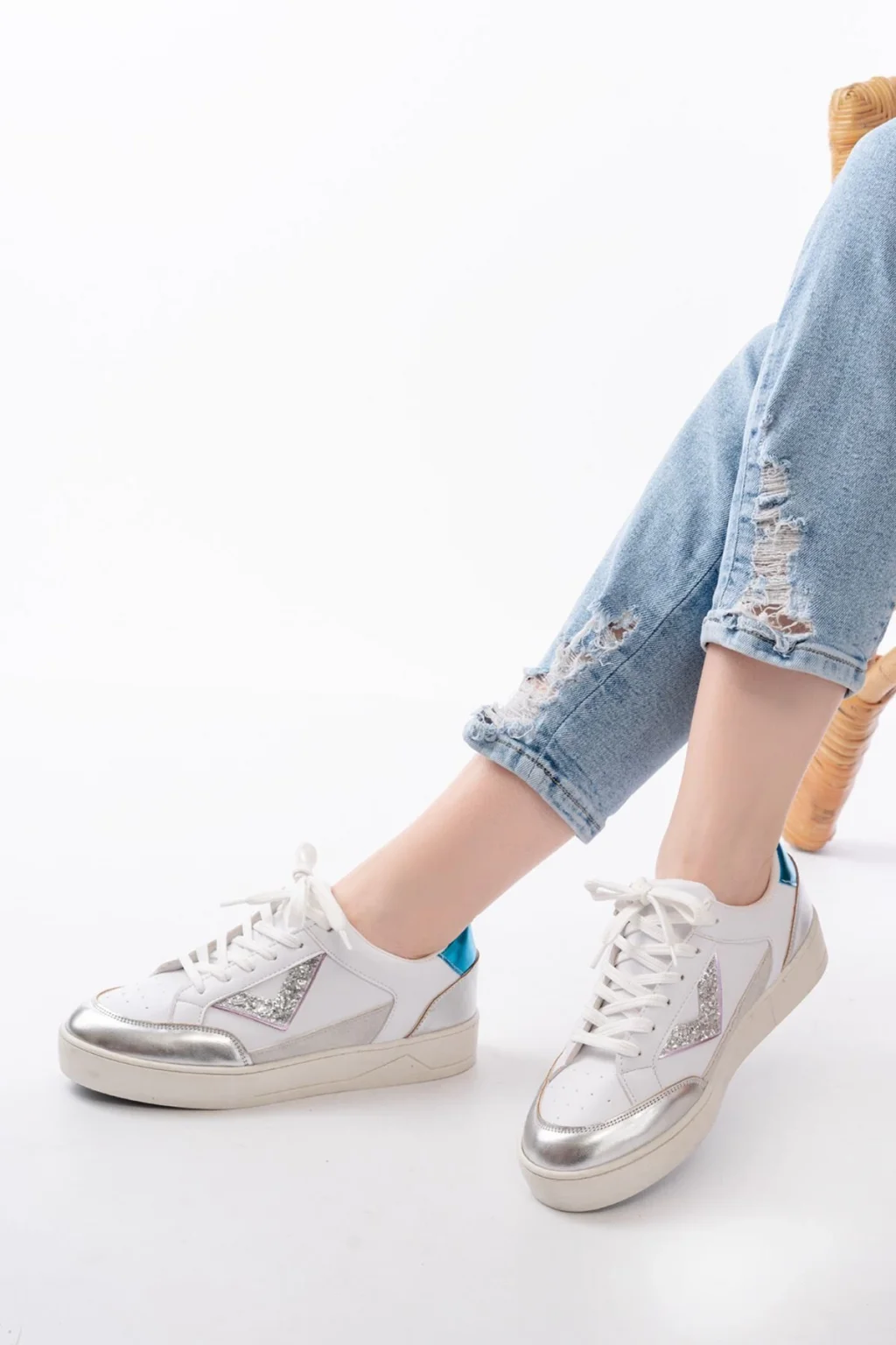 Lawin Beyaz Cilt Beyaz Simli Bağcıklı Spor Ayakkabı