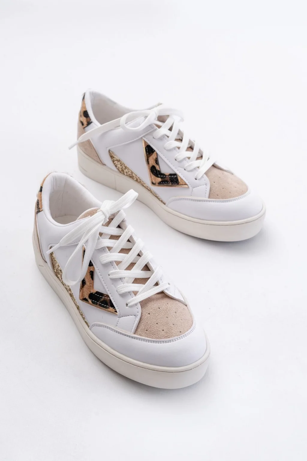 Natte Beyaz Cilt Bağcıklı Spor Ayakkabı