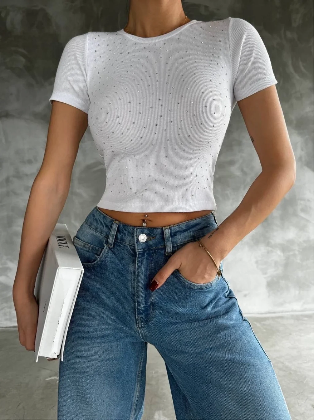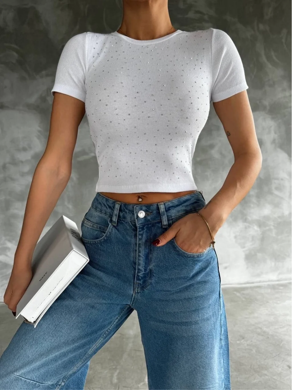Şıklığı ve konforu bir arada arayan kadınlar için ideal bir tercih olan KAZAX taş baskılı kaş korse bluz, gardırobunuzun vazgeçilmez parçalarından biri olmaya aday!