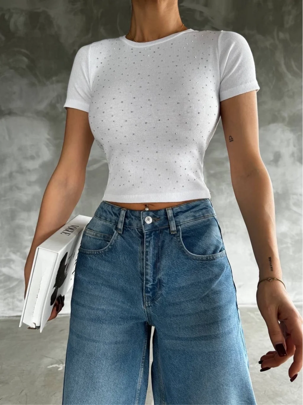 KAZAX markasının şık ve modern tasarıma sahip taş baskılı kaş korse bluzu ile şıklığınızı ön plana çıkarabilirsiniz. İnce detayları ve kaliteli kumaşıyla dikkat çeken bu bluz, hem günlük kullanıma hem de özel davetlere uygun bir seçenektir.