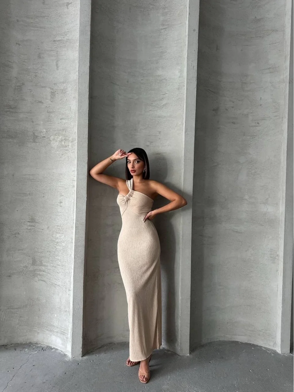 KAZAX tek omuz pliseli elbise ile her şıklık olaya hazırsınız!