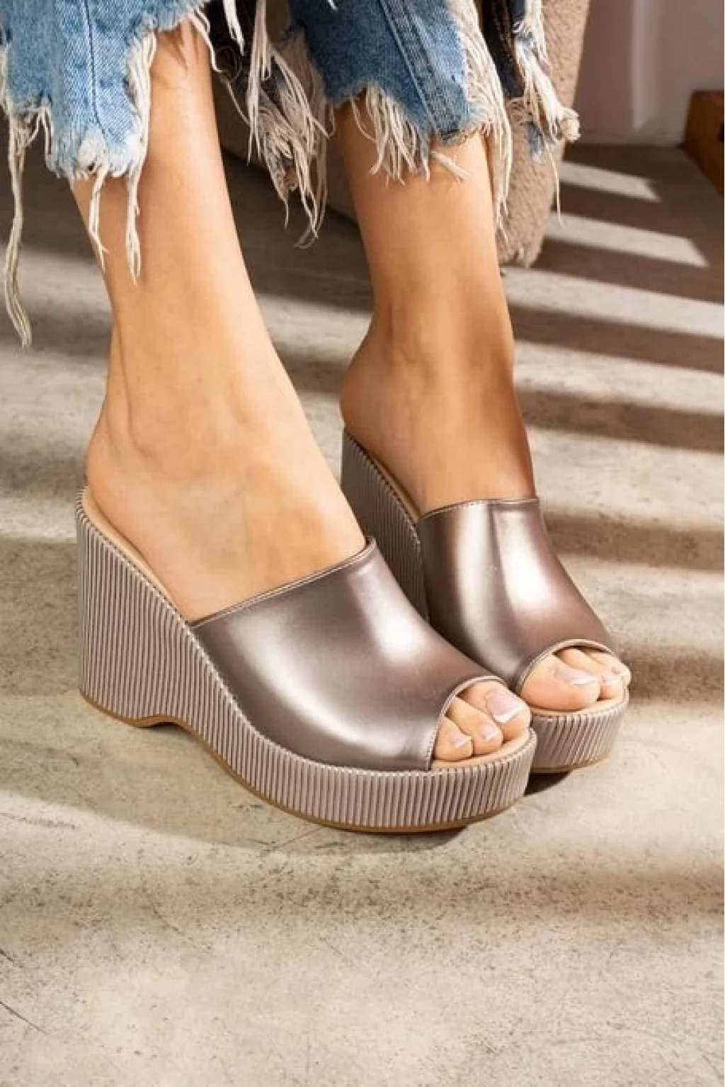 Kear Siyah Rugan Dolgu Topuk Ayakkabı