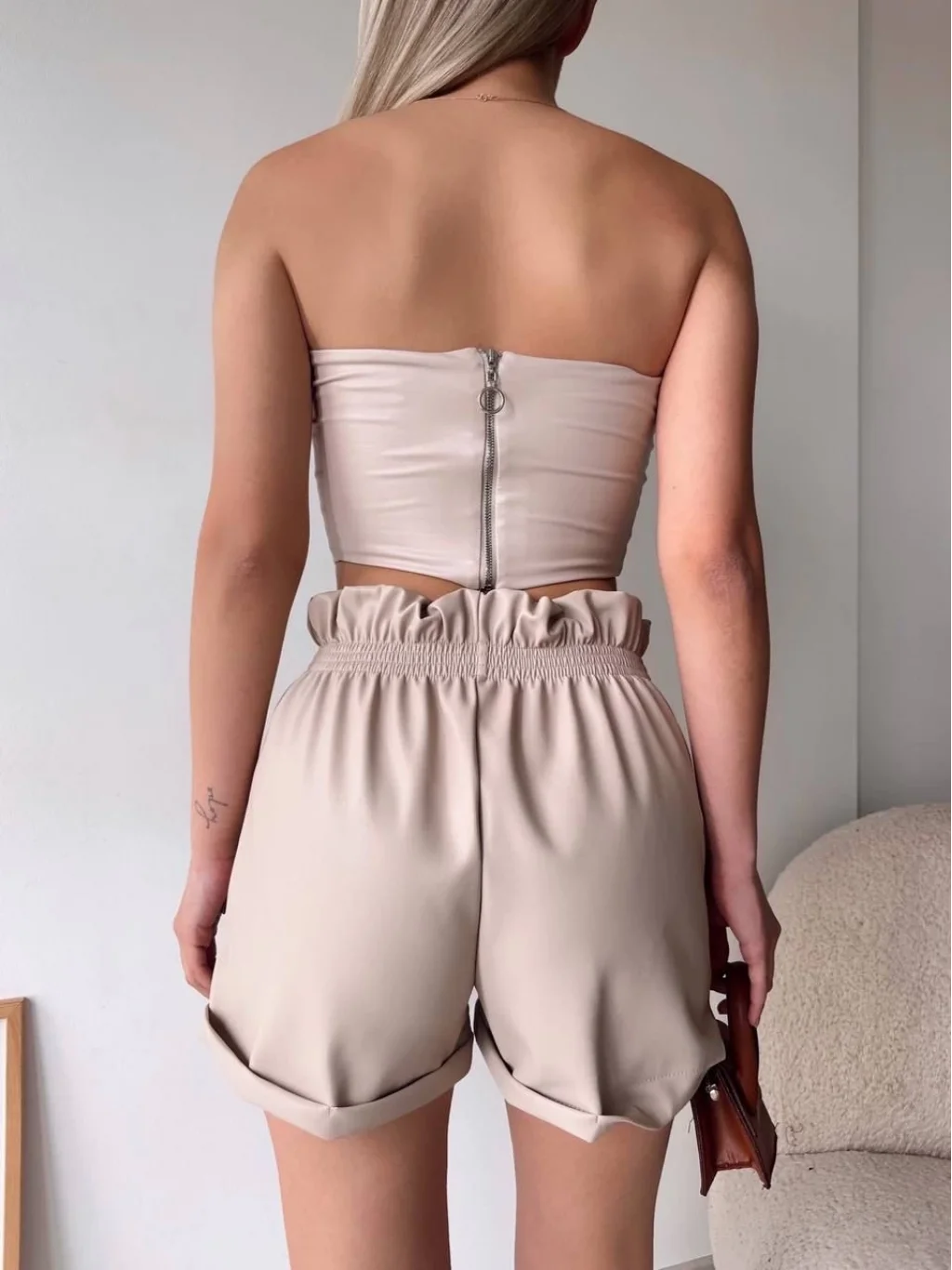 Ürün Adı: Tüllü Deri Crop Bej W24615
