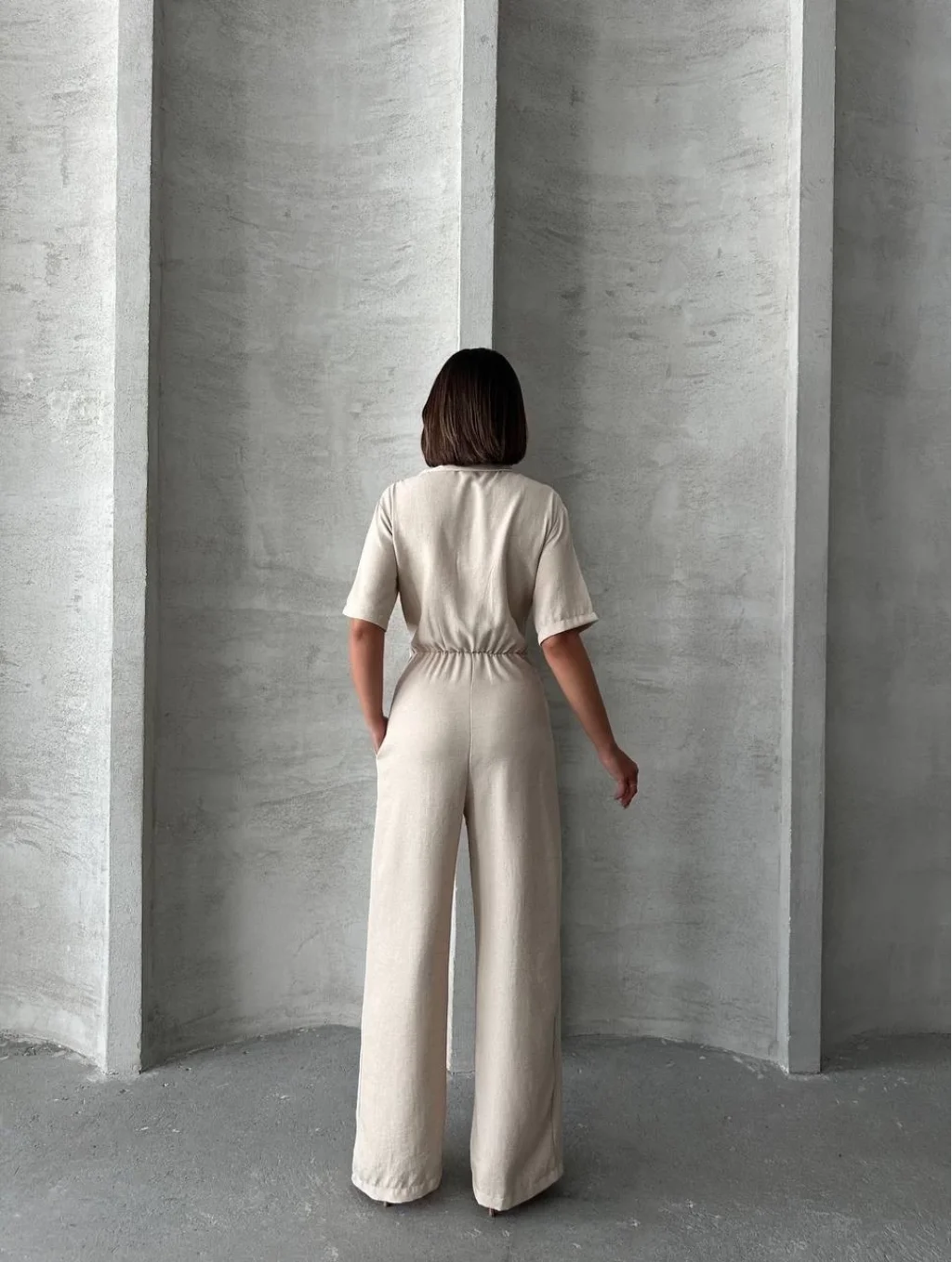 Uzun Keten Tulum, şıklığı ve rahatlığı bir arada sunan bir parçadır.