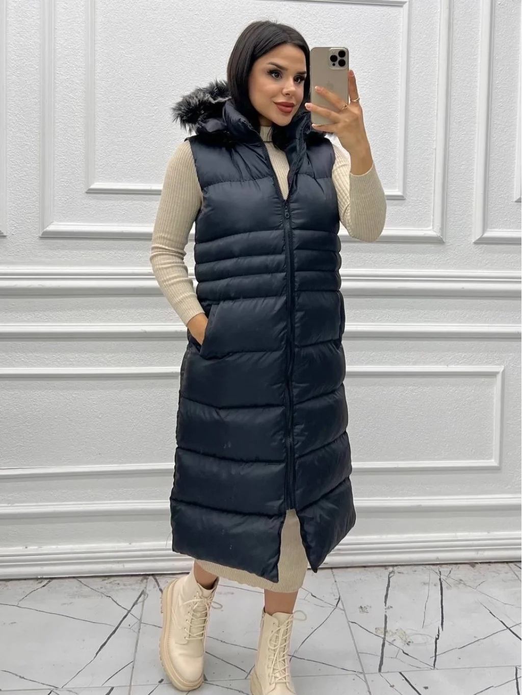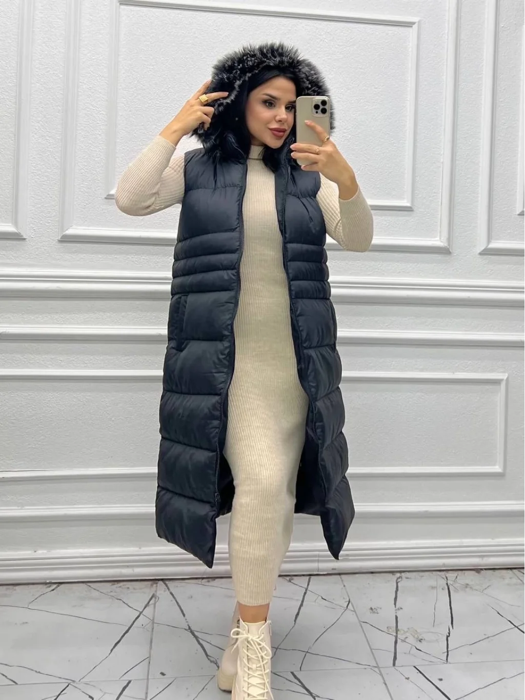 Astarlı kapşonlu kuzu yelek beyaz t1243