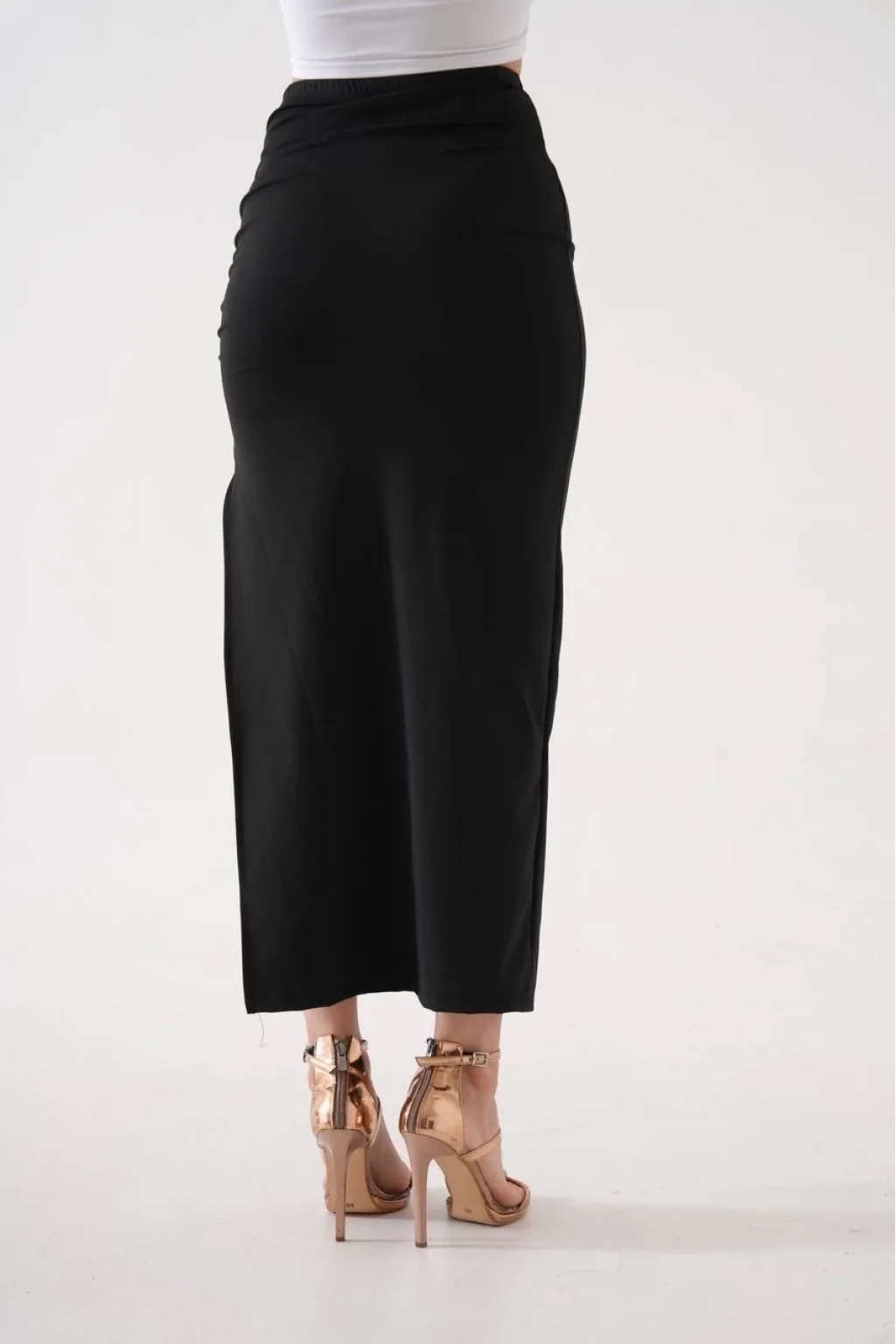 Bu şık ve zarif uzun yırtmaçlı ince kumaş etek siyah rengi ile şıklığınıza şıklık katacak. İnce kumaşı sayesinde rahatlıkla hareket edebilir, gün boyu konforlu bir şekilde kullanabilirsiniz.