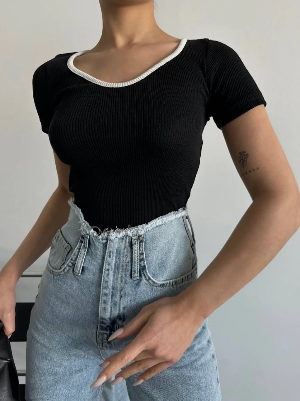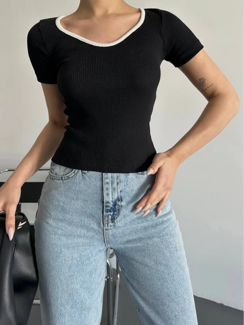 V yaka tasarımı, boyun ve dekolte bölgesini zarifçe vurgular.