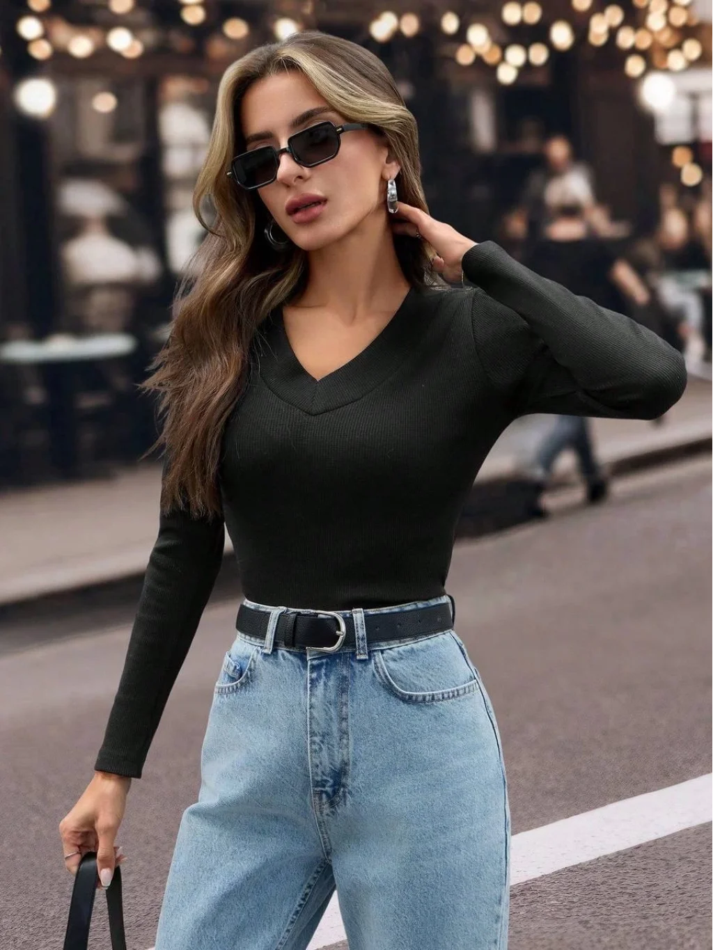 Şıklık ve rahatlığı bir arada sunan V yaka kaşkorse bluz, gardırobunuzun vazgeçilmez parçalarından biri olmaya aday.