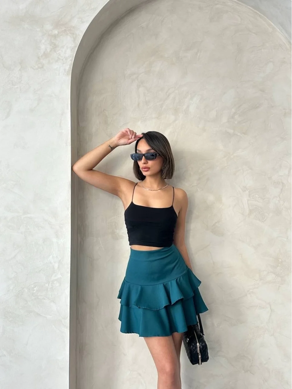 Bu şık ve göz alıcı yeşil eteği günlük şıklığınızda veya özel günlerde tercih edebilir, tarzınıza şıklık katabilirsiniz.