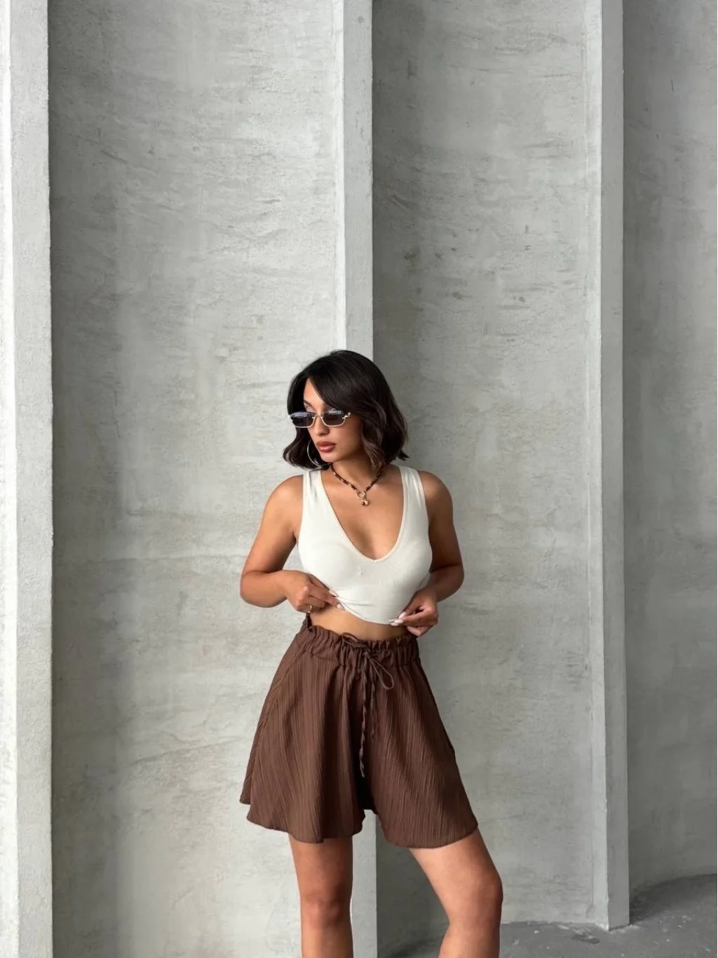 Bu yazın favori parçalarından biri olan Volanlı Keten Şort Kahve S255058, şıklığı ve rahatlığı bir arada sunuyor. İster günlük kombinlerde ister şık akşam davetlerinde tercih edebileceğiniz bu şort, gardırobunuzun vazgeçilmezi olmaya aday.