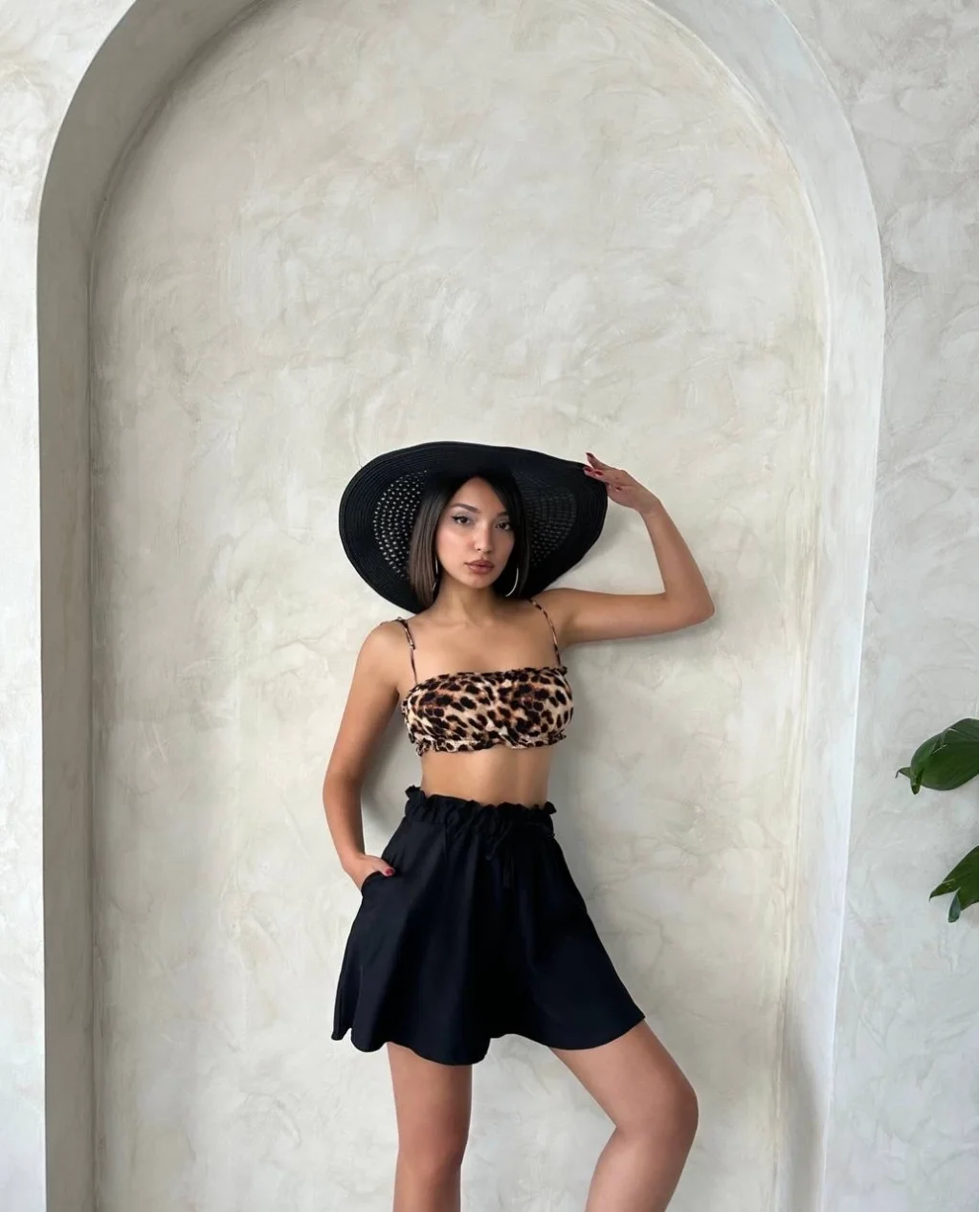 Bir tatil gününde rahatlığı şıklıkla buluşturan Volanlı Keten Şort Siyah, gardırobunun vazgeçilmez parçalarından biri olmaya aday!