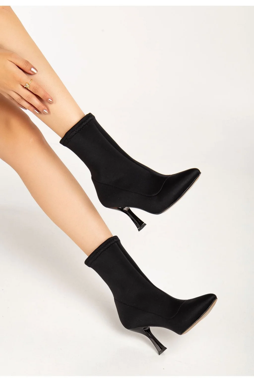 02-02 Siyah Süet Taş Aksesuarlı Lastikli Günlük Kadın Bot