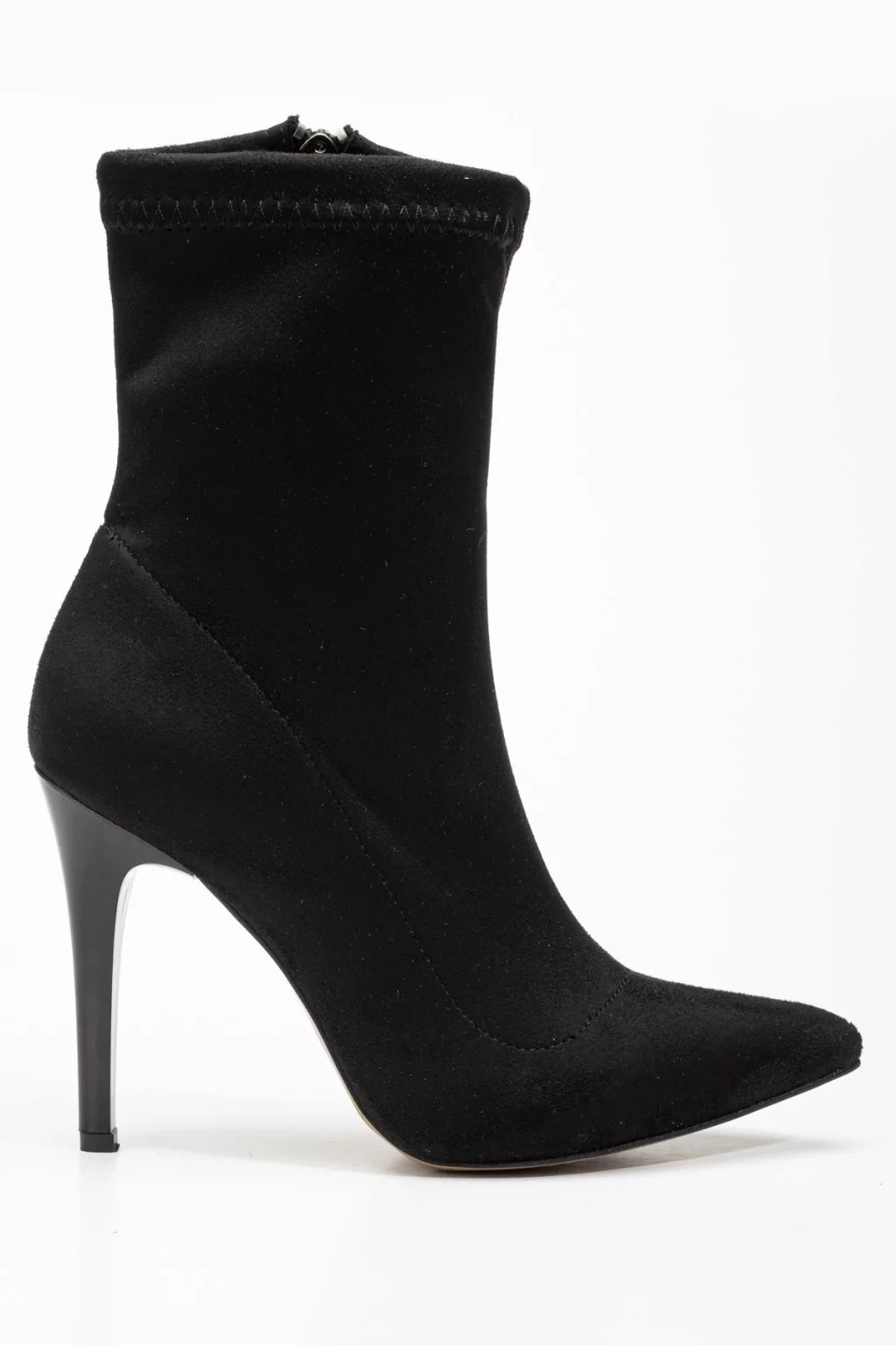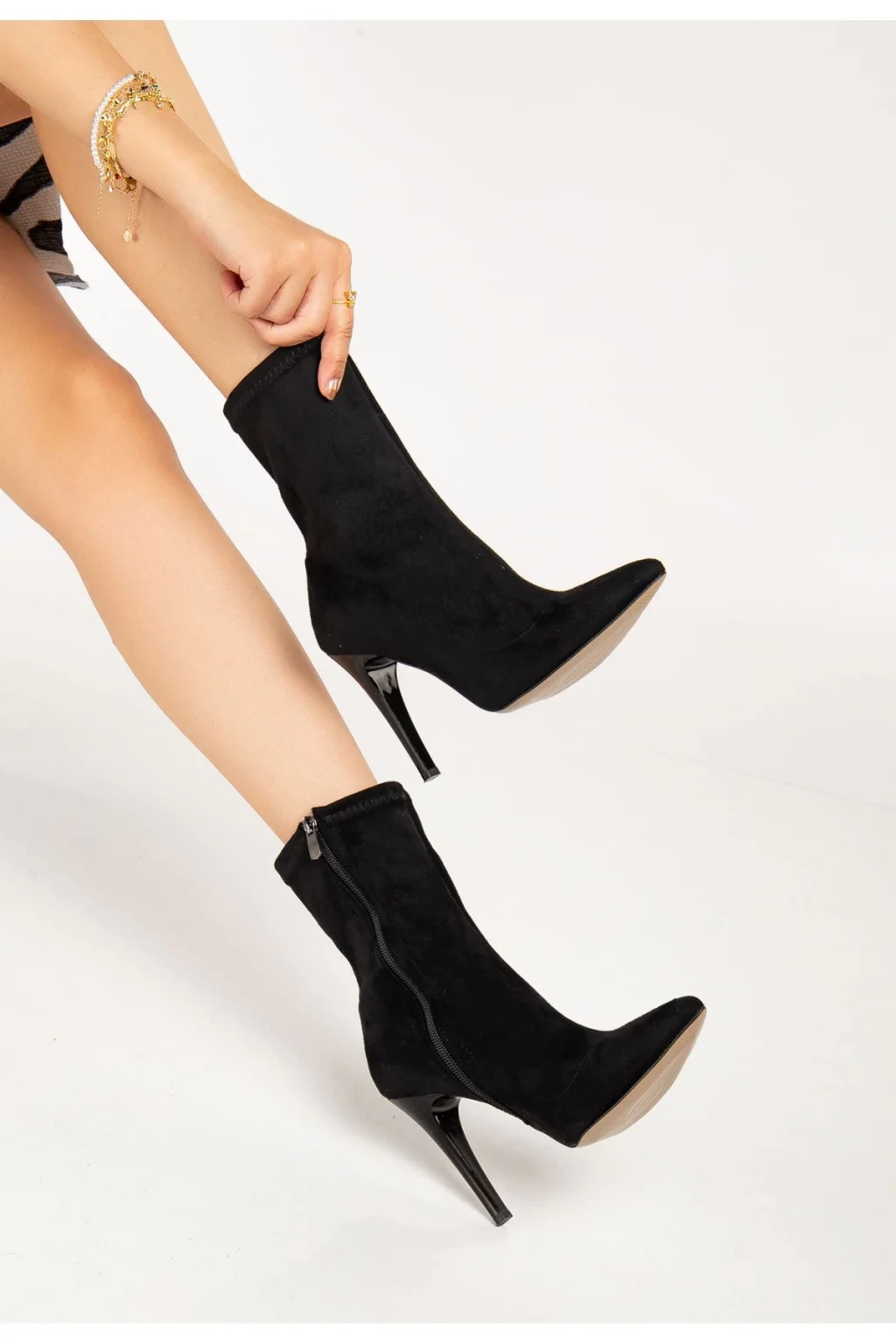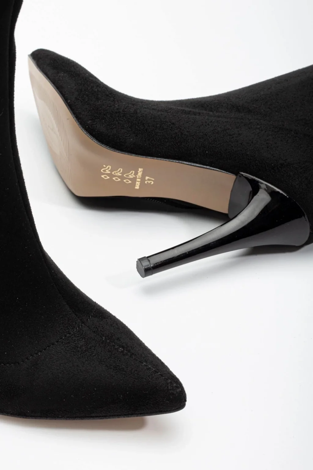 02-02 Siyah Süet Taş Aksesuarlı Lastikli Günlük Kadın Bot