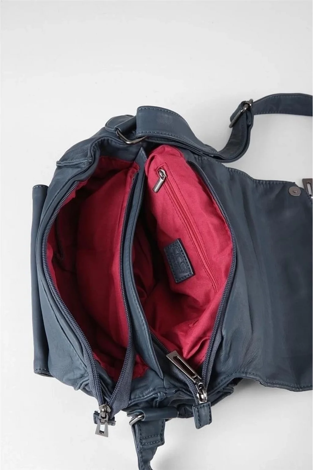 2 adet fermuarlı ana bölme ana bölme içerisinde 1 adet fermuarlı cep 2 adet açık cep ön tarafta kapak altında 1 adet fermuarlı cep kapakta 1 fermuarlı bölme arka yüzünde 1 adet fermuarlı cep