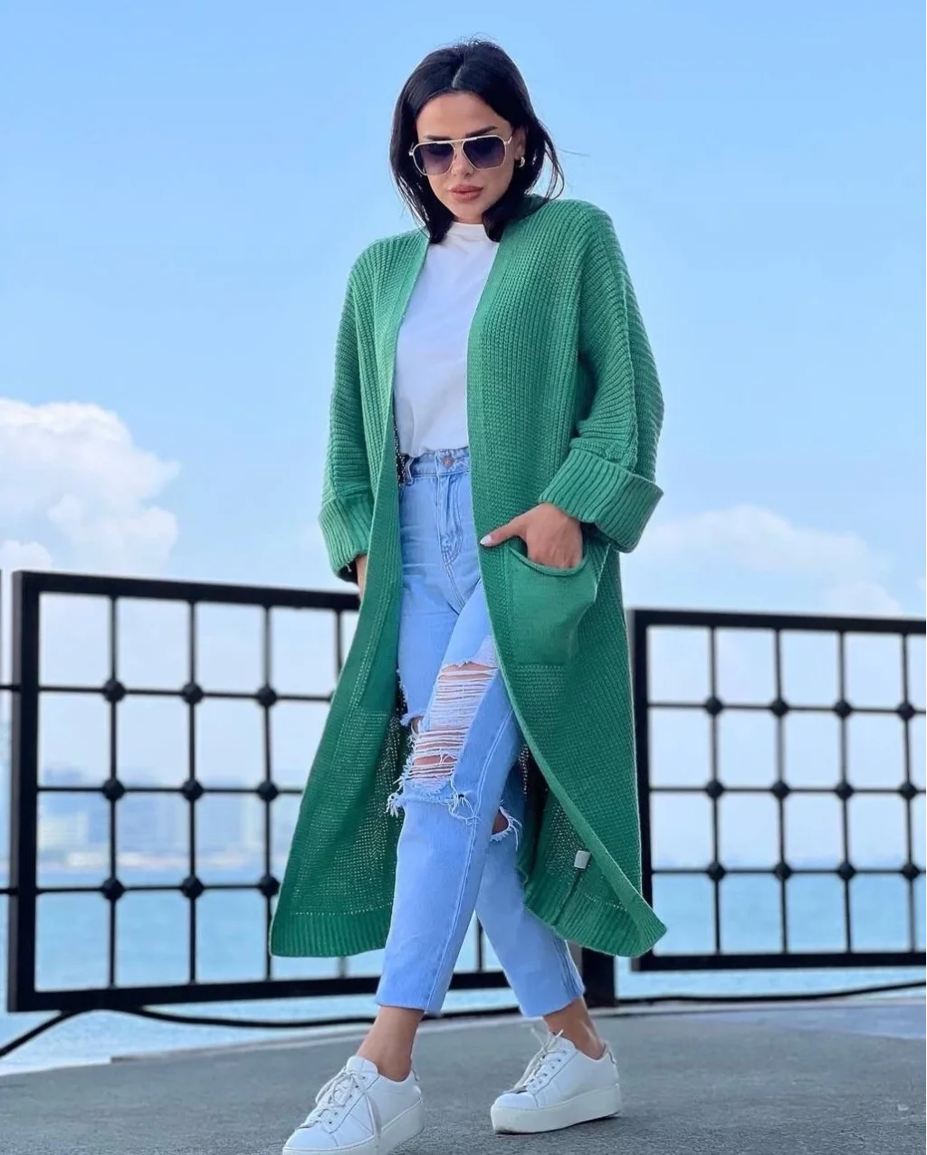 Rahat ve salaş kesimiyle öne çıkan yarasa kol uzun triko hırka, günlük stilinize modern bir dokunuş katıyor. Hafif yapısı ve yumuşak dokusuyla serin havalarda ideal bir tamamlayıcıdır. için uygundur Salaş duruşlu yarasa kol tasarım Şık, sade ve kullanışlı